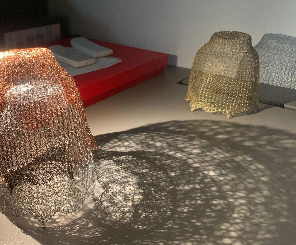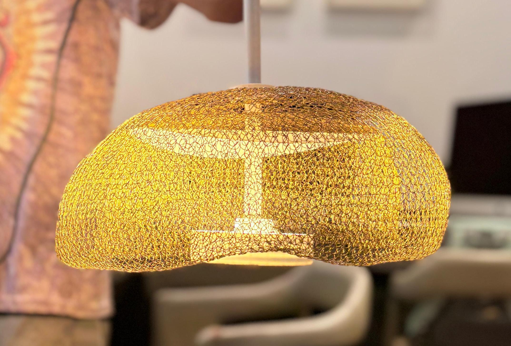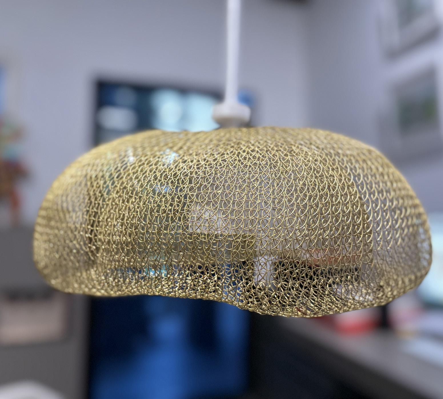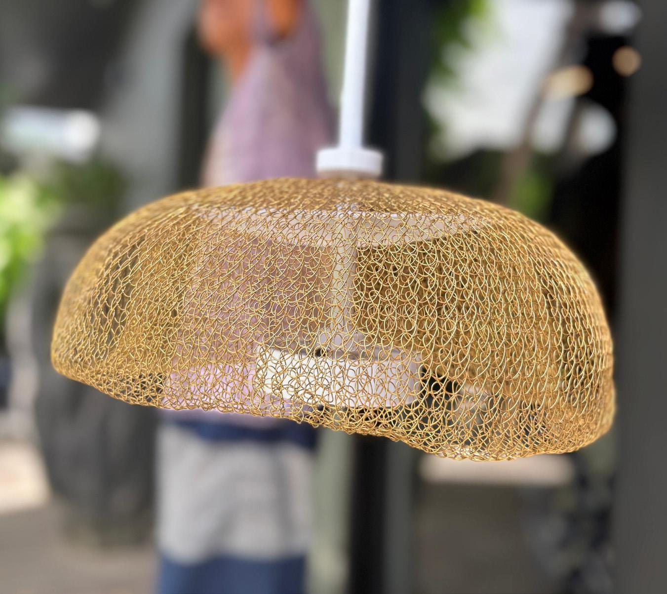 Crafted entirely by hand, the prototype involved experimenting with weaving density, tension, and structure to achieve both aesthetic fluidity and structural stability. The form itself is intentionally organic celebrating the natural variations that come from the artisan’s touch. Throughout the prototyping phase, attention was paid to how the wire interacts with light: the open weave allows for ambient diffusion, while the layering creates a delicate shadow play the