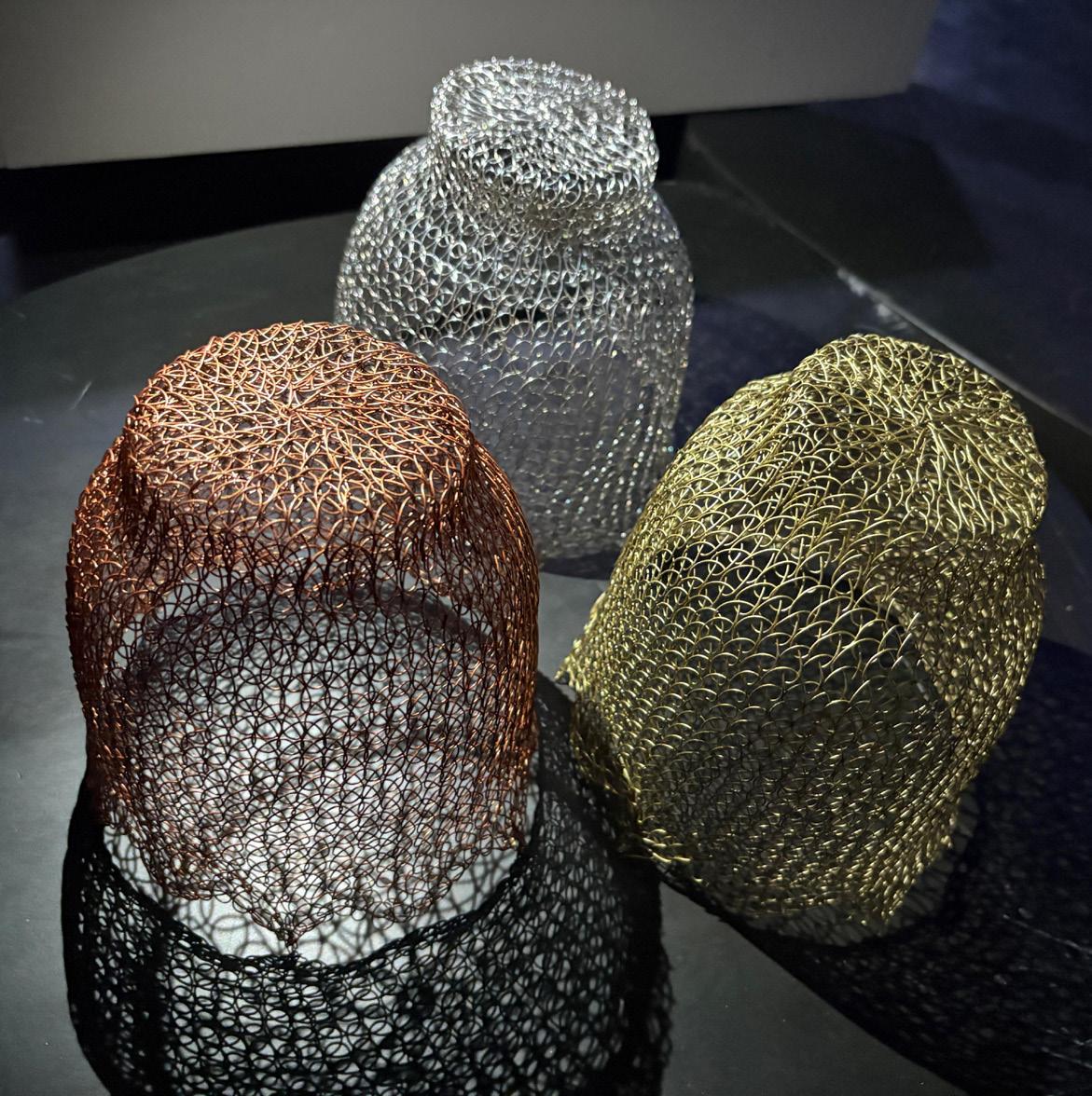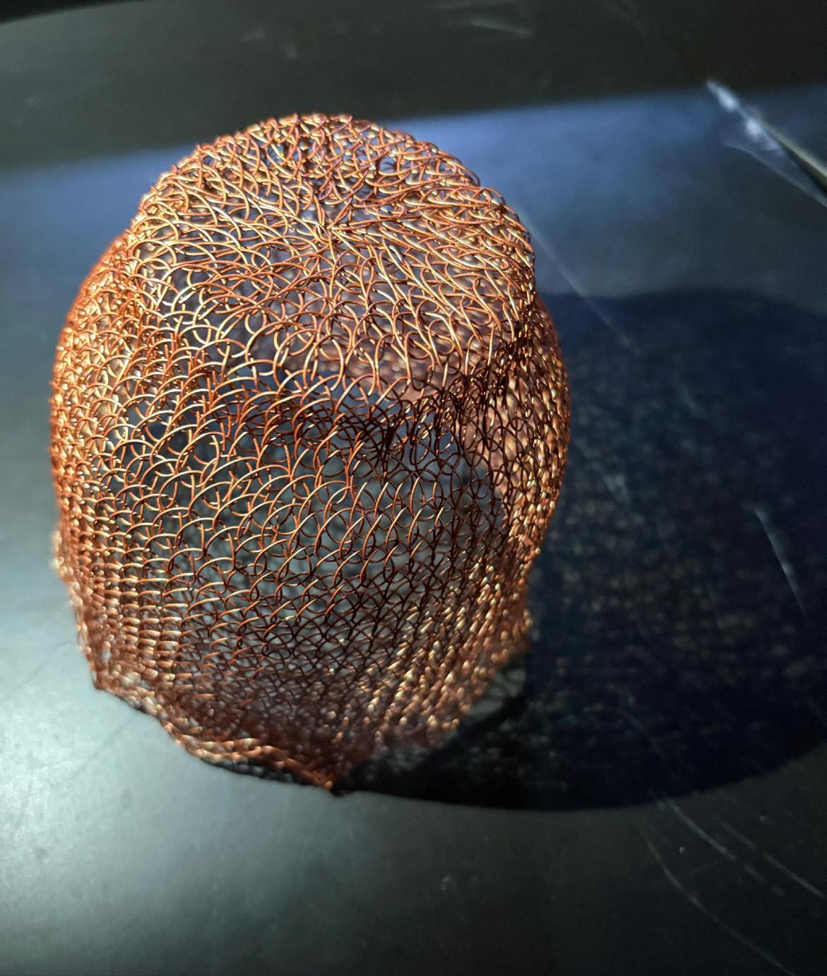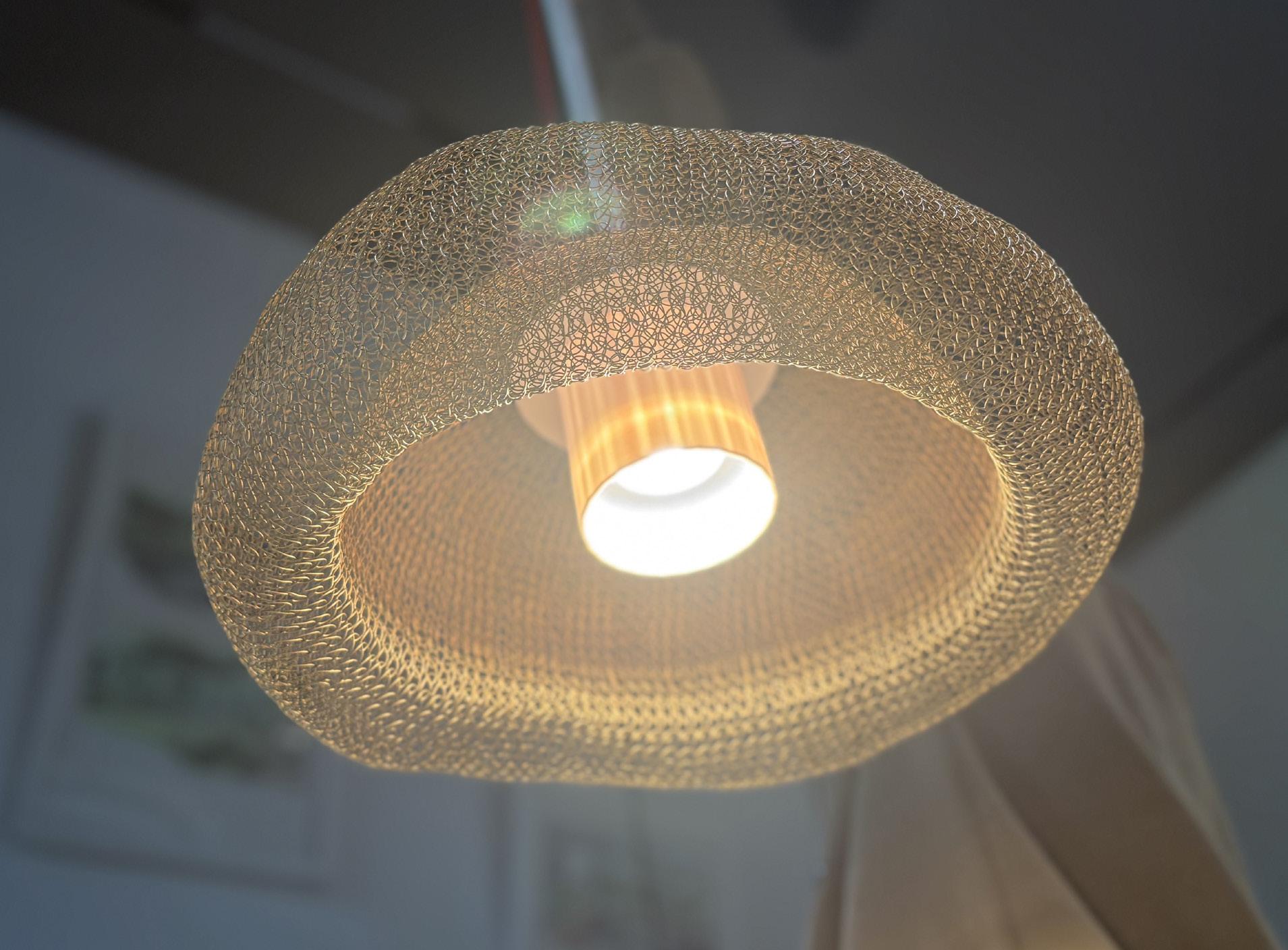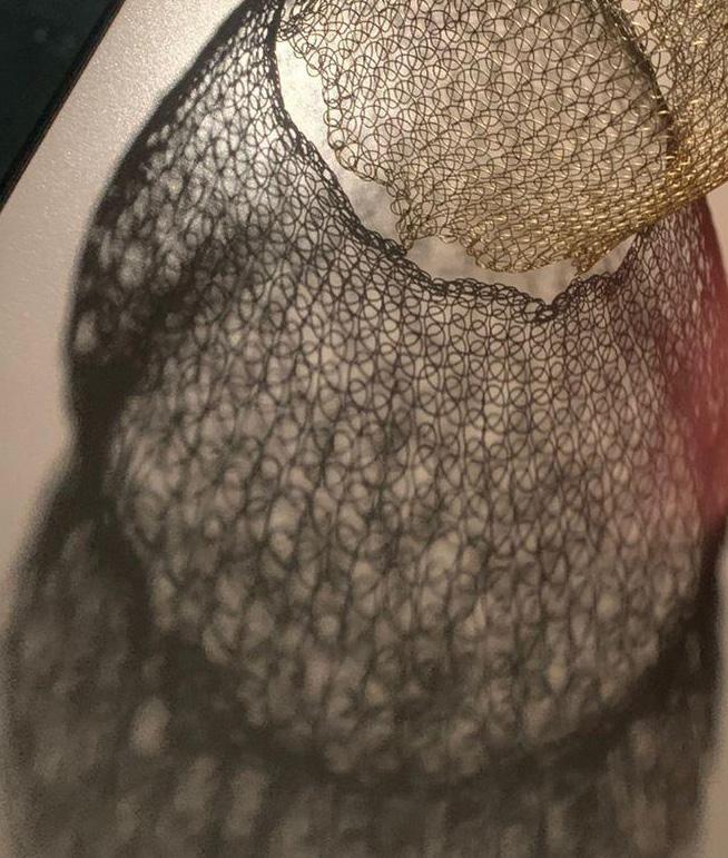 Crafted entirely by hand, the prototype involved experimenting with weaving density, tension, and structure to achieve both aesthetic fluidity and structural stability. The form itself is intentionally organic celebrating the natural variations that come from the artisan’s touch. Throughout the prototyping phase, attention was paid to how the wire interacts with light: the open weave allows for ambient diffusion, while the layering creates a delicate shadow play the