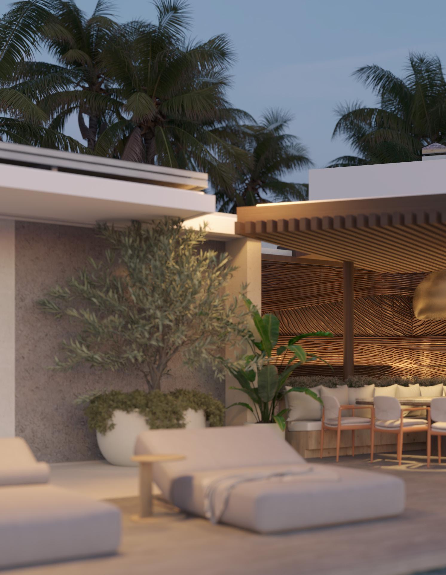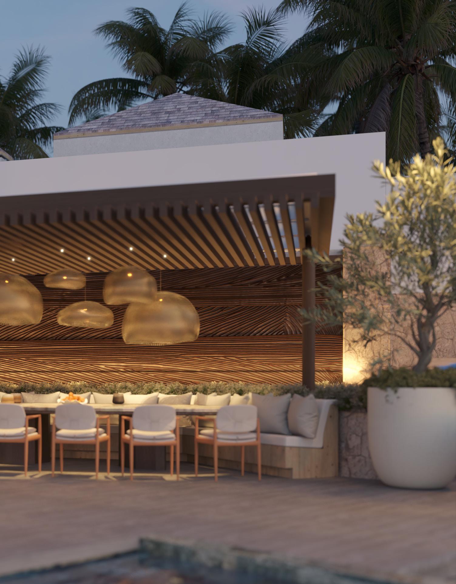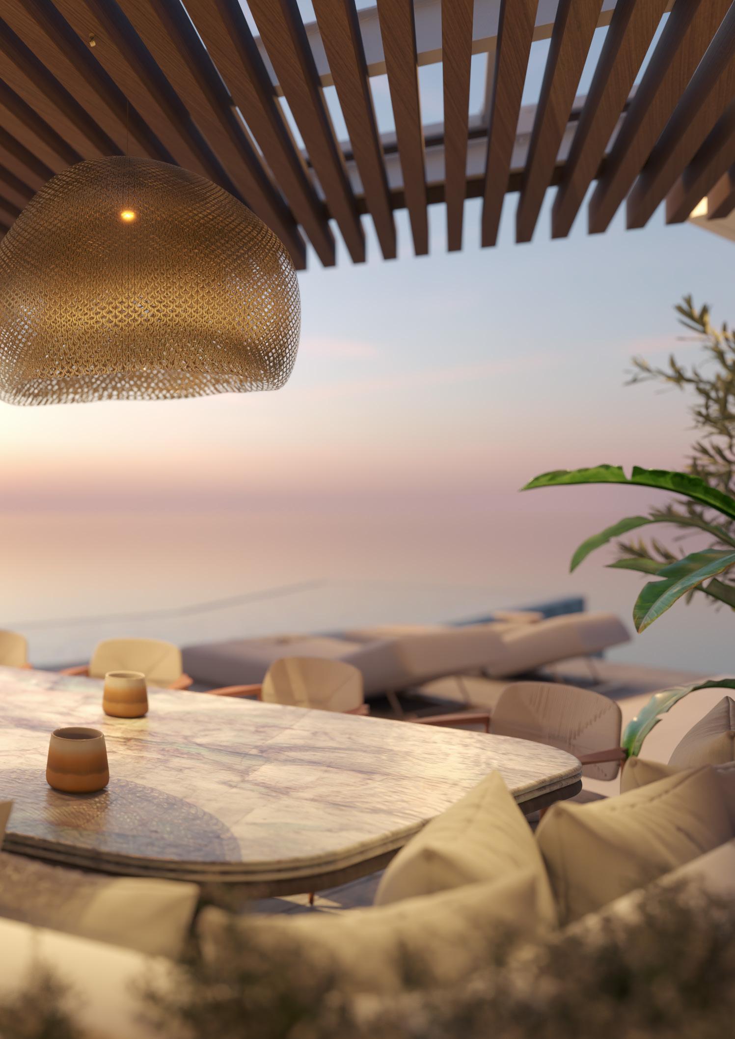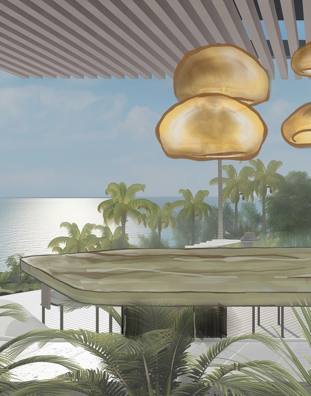 Ici, chaque détail a été pensé comme une note dans une partition. La lumière devient un murmure, le marbre une respiration, le bois sculpté une mémoire vivante. Lorsque la nuit tombe et que les suspensions s’illuminent, l’espace se transforme en un théâtre d’ombres et de reflets, où les voix se mêlent au cliquetis des verres et au parfum salin venu de l’océan. Plus qu’un lieu, c’est une scène de vie, façonnée pour que les instants partagés deviennent inoubliables.
