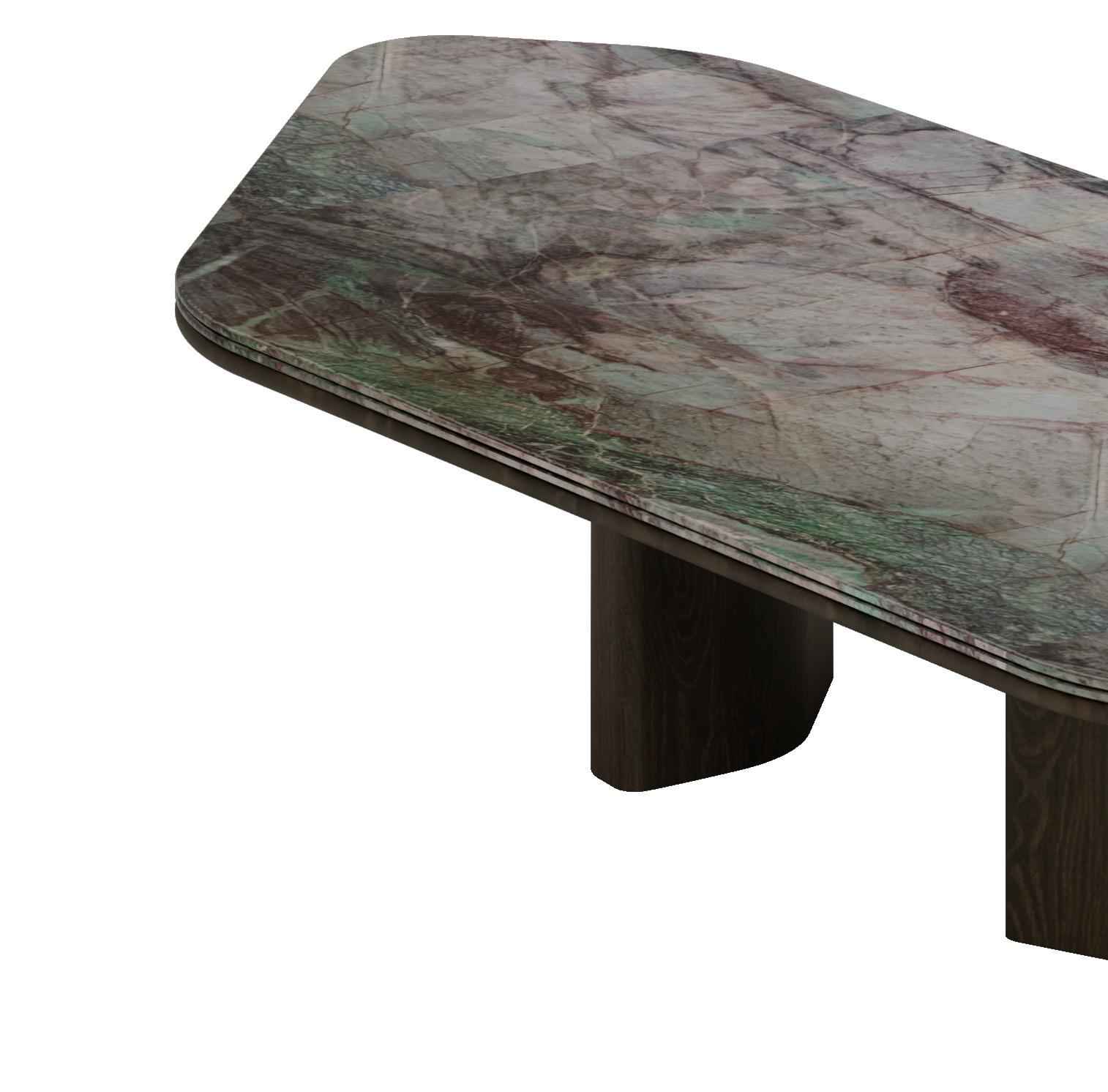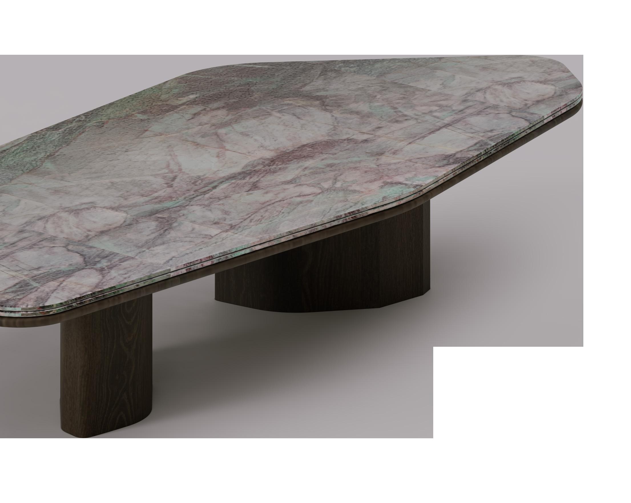Crafted entirely from premium Forest Green marble, this table showcases a seamless monolithic design that highlights the stone’s deep green tones and striking natural veining. Finished in leather textures, the surface enhances both the visual depth and tactile richness of the marble. A statement piece that blends sculptural elegance with enduring durability.