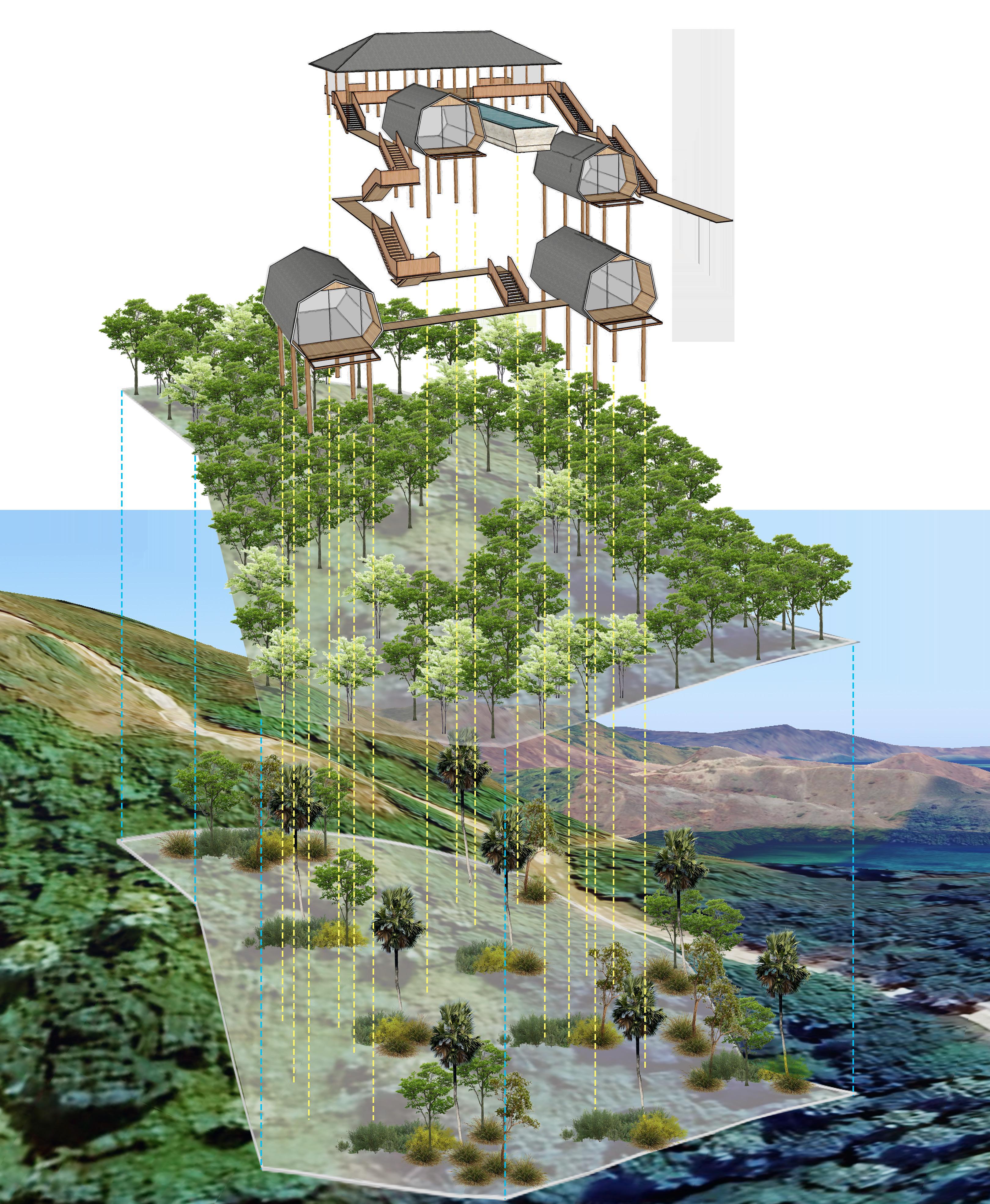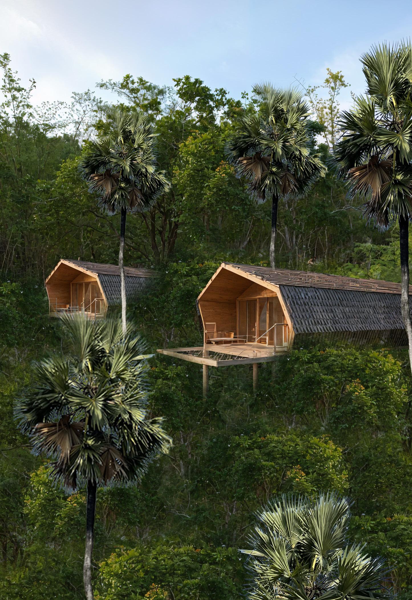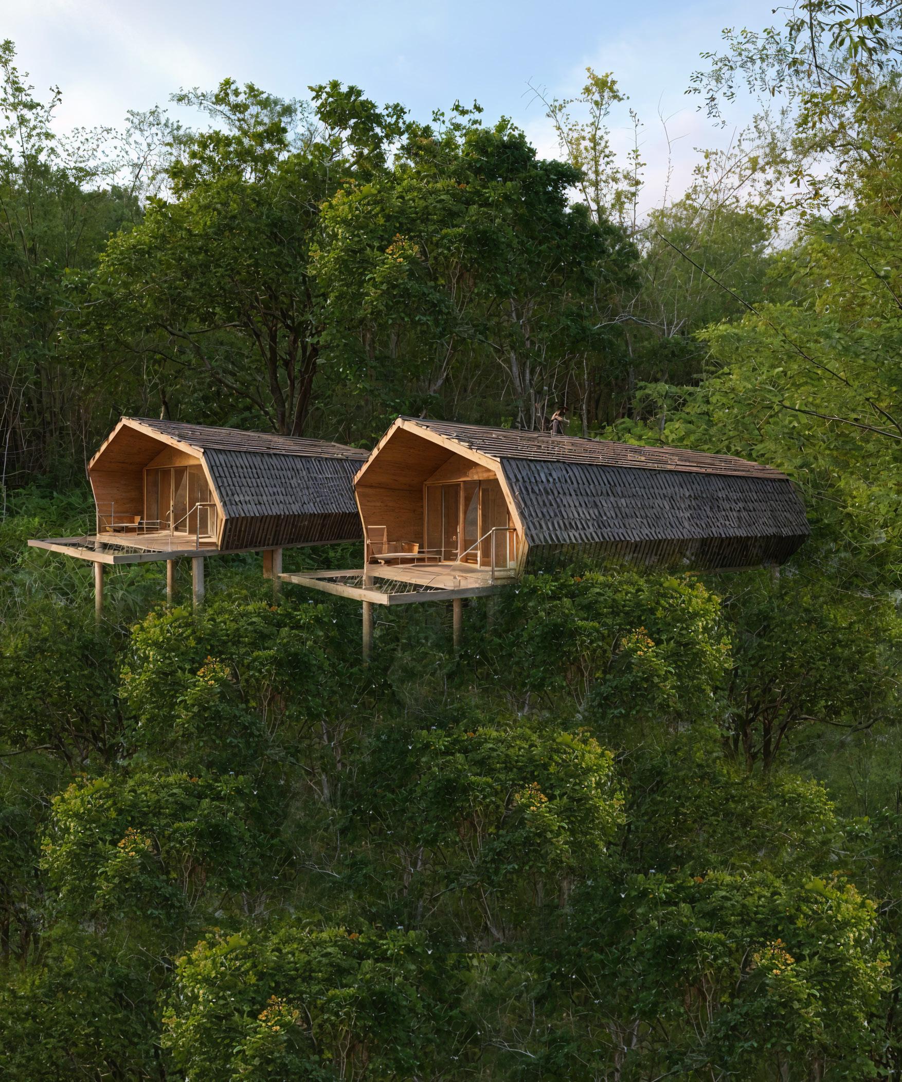The Close-up Cabins with 1 bedroom floating above the vegetation