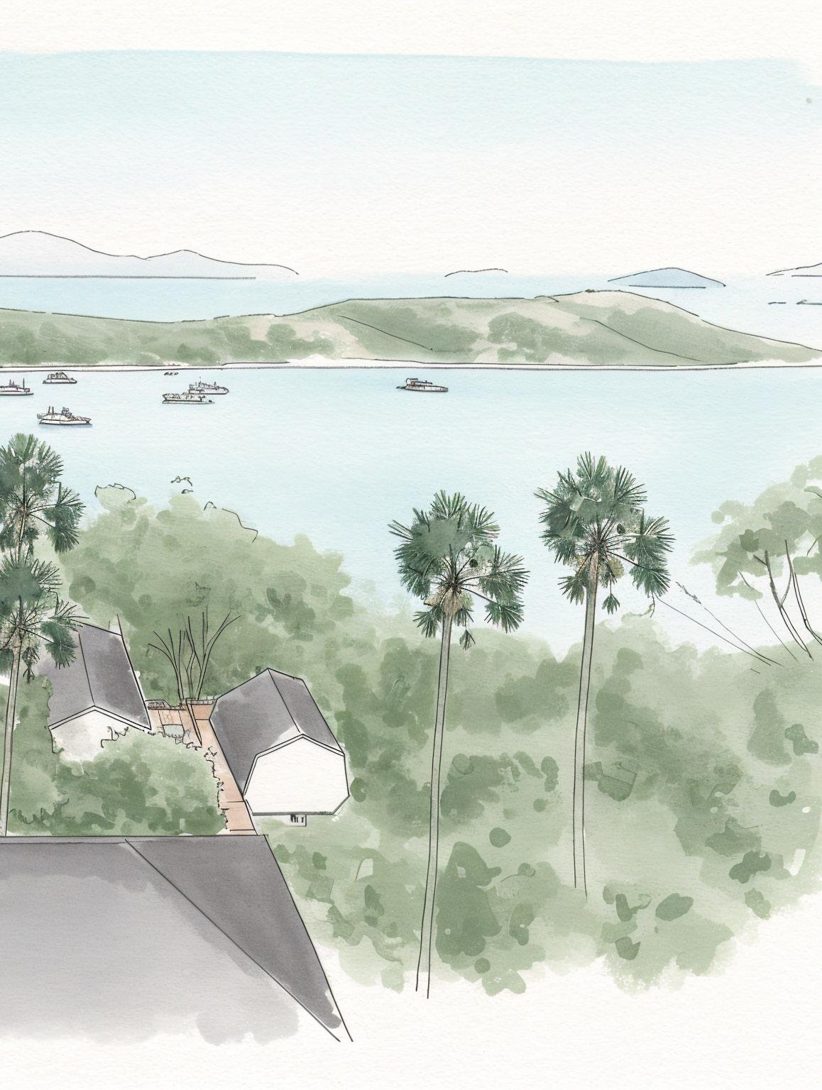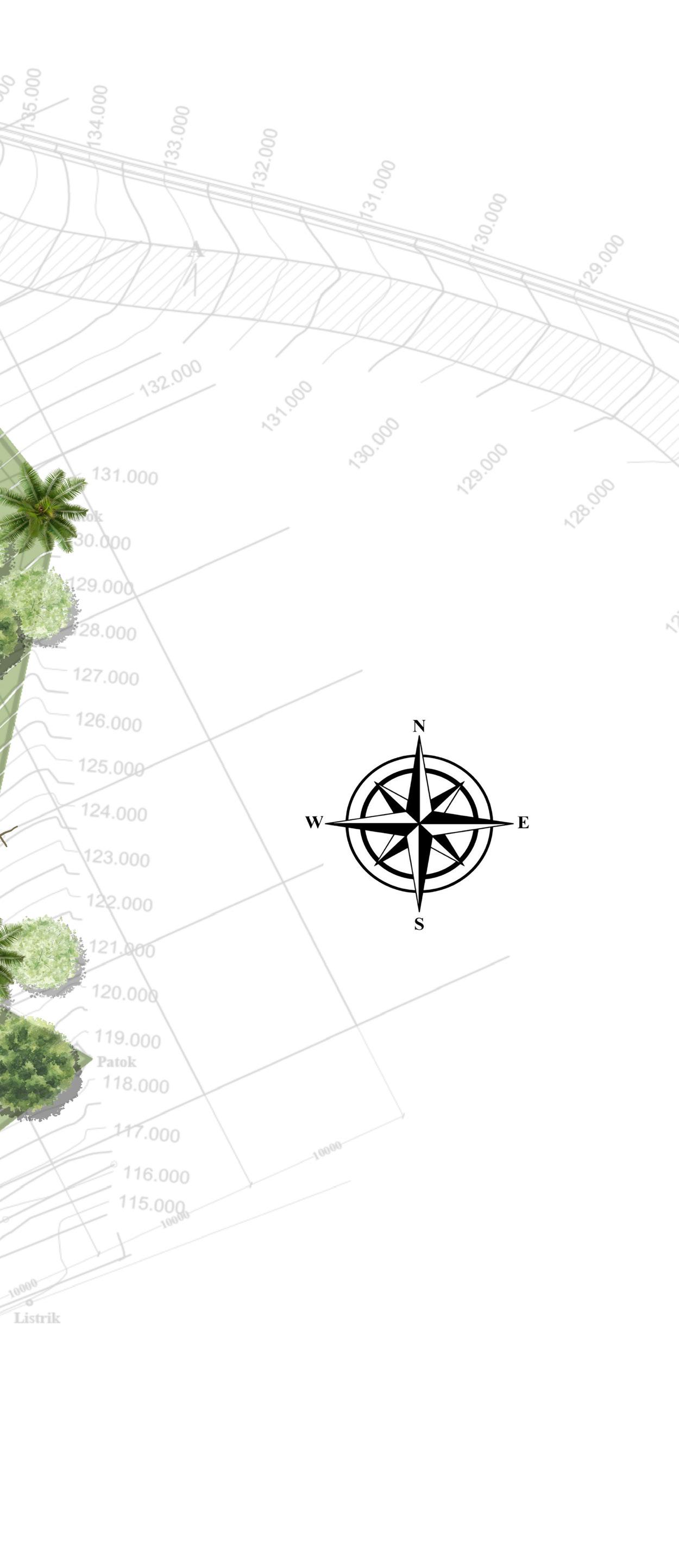 Positioned on a hillside with an approximate 30° elevation, the land rises above the surrounding terrain, providing an impressive vantage point. From this elevated position, the site opens toward the western horizon, offering a panoramic sunset view over the Flores Sea and the chain of small islands scattered along the coast.