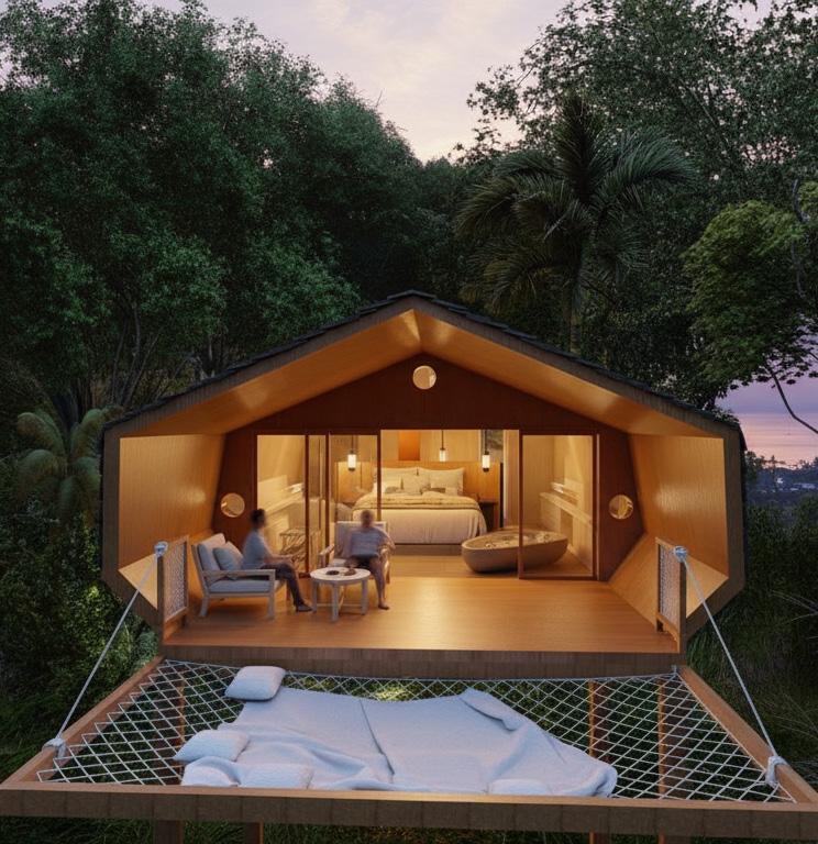 Perched above the dramatic hills of Labuan Bajo, this capsule cabin villa and restaurant concept offers a new way to experience coastal luxury. Four exclusive one-bedroom floating cabins provide privacy, breathtaking views, and intimate connection with nature, while a stylish hillside restaurant invites guests to dine, socialize, and celebrate the sunset. Every stay becomes a curated journey — serene, memorable, and uniquely personal.
