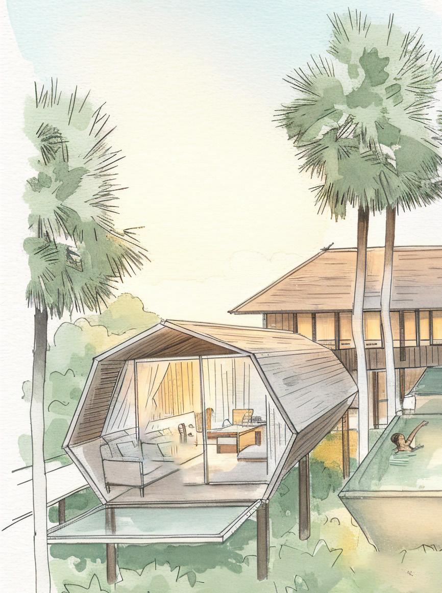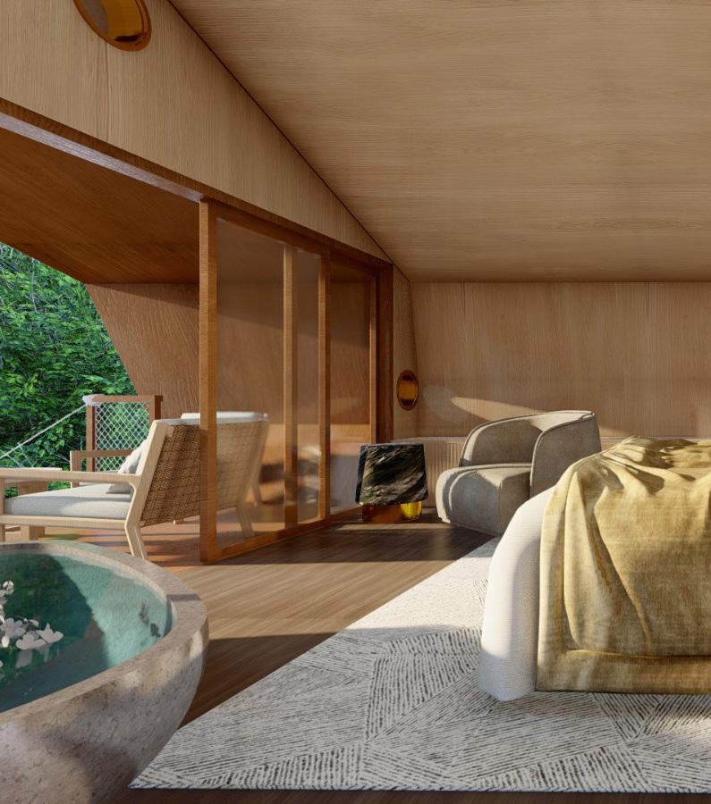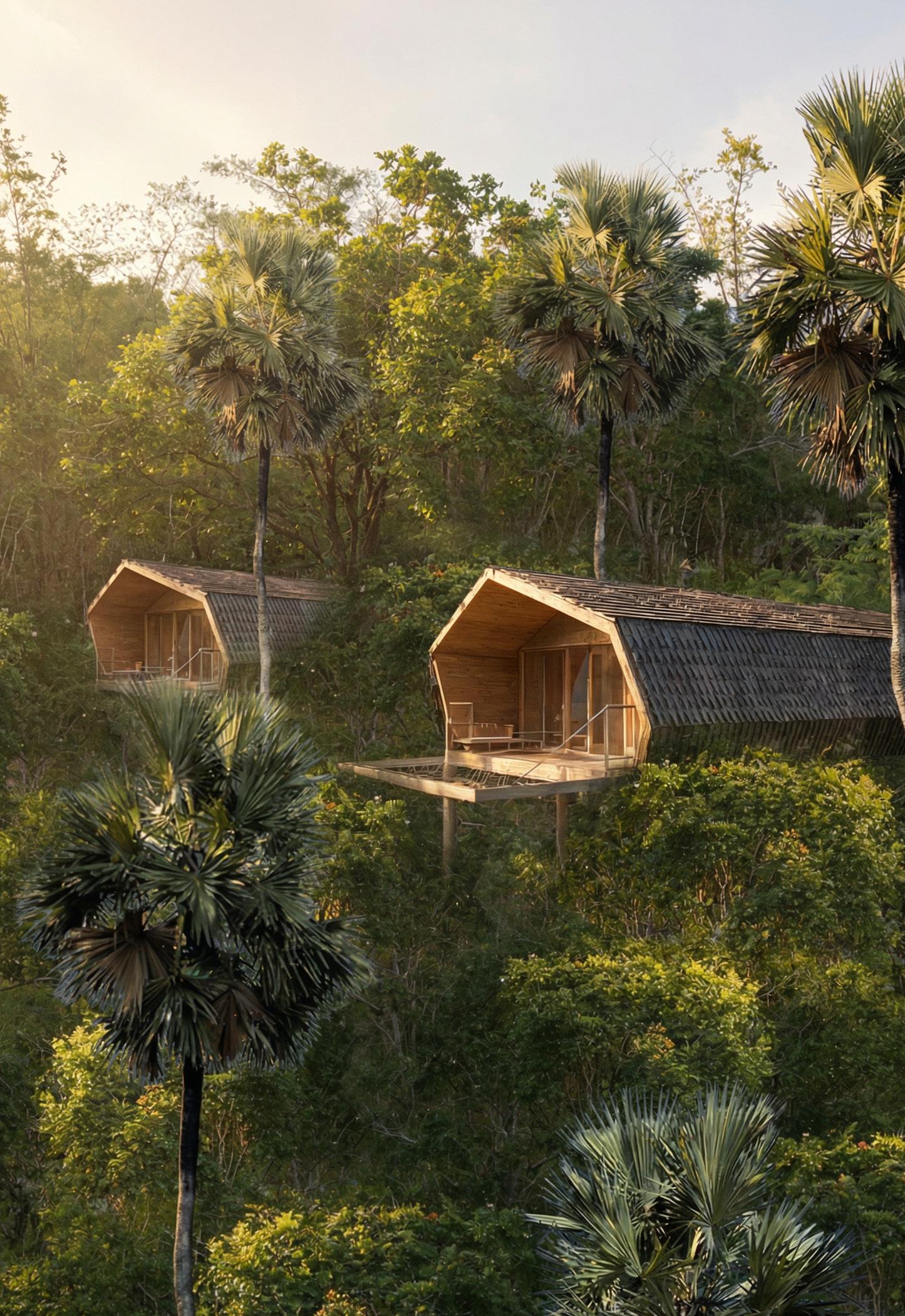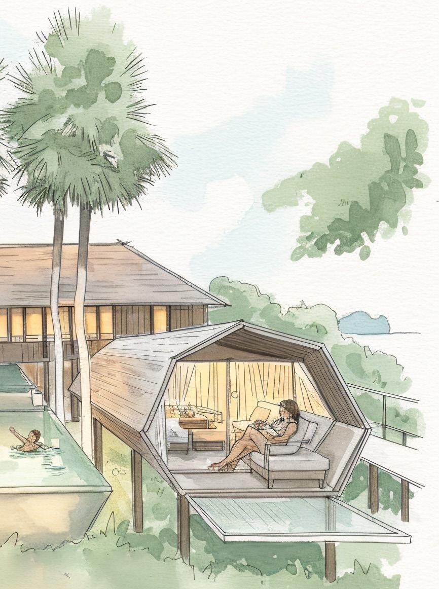 Reference projects such as Woodnest in Norway—pine cone–shaped tree houses overlooking a fjord—and Niliaitta in Finland, a secluded cabin deep within the forest, demonstrate how architecture can elevate nature-driven hospitality. These projects emphasize slow journeys, earned comfort, intimacy, and panoramic views. Set lightly within their landscapes, they offer guests a chance to disconnect, reconnect, and fully relax—turning remote locations into meaningful, memorable retreats.