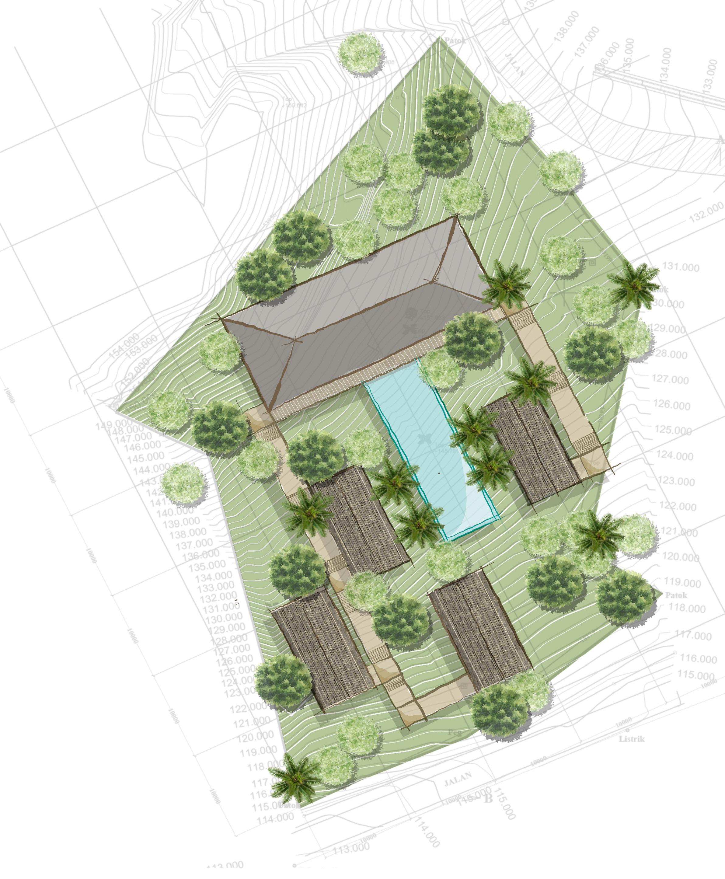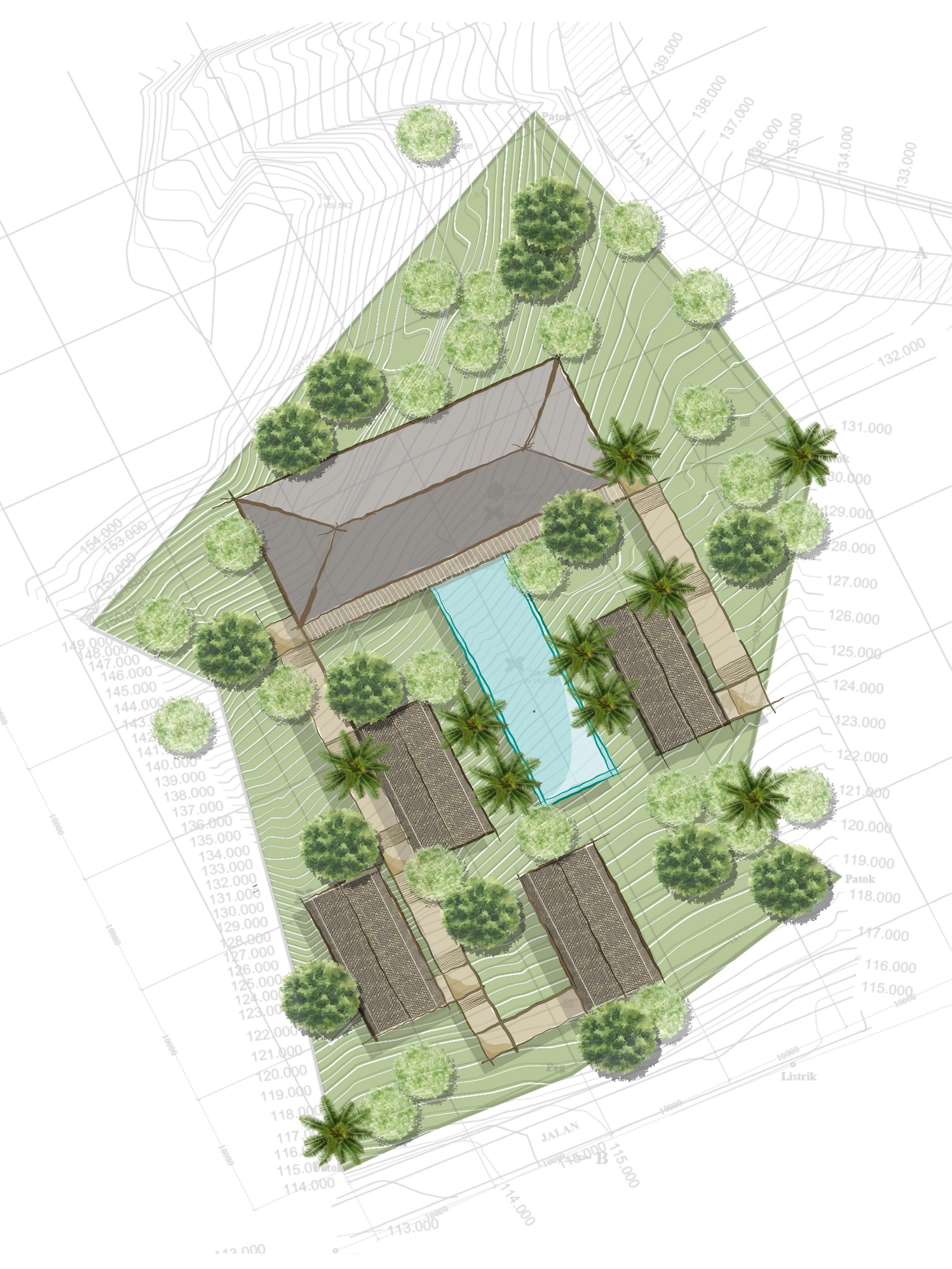 Total Building - Restaurant = 338 sqm - Organic Pool = 120 sqm