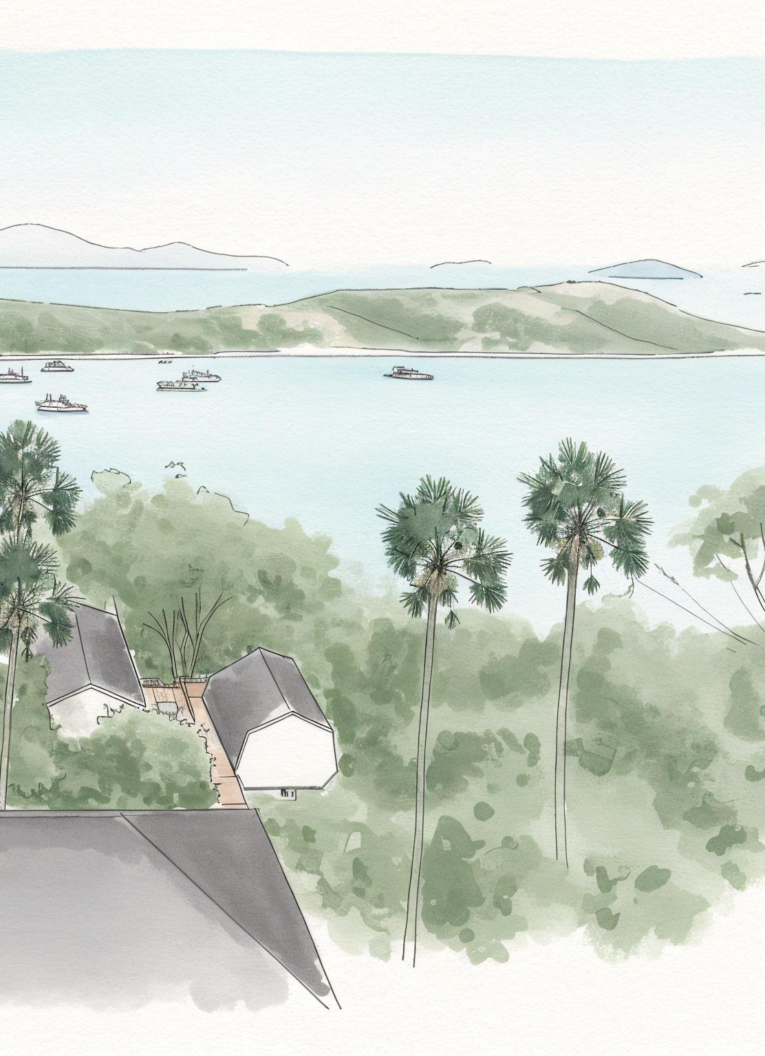 The 1,030 sqm site is defined by a majestic acacia tree, soft contours, and open views to the north.