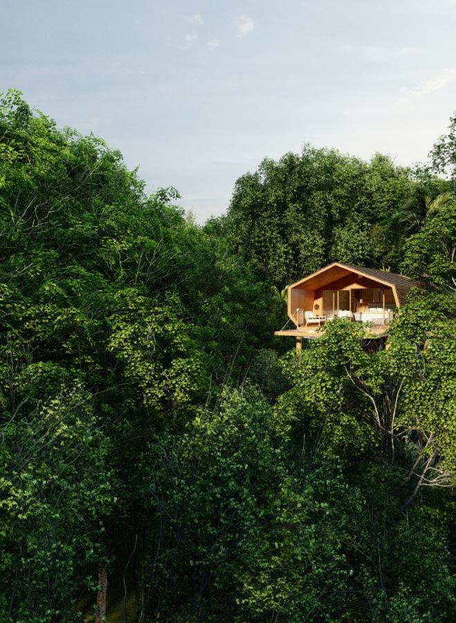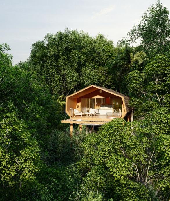 The Cabins with 1 bedroom floating above the vegetation