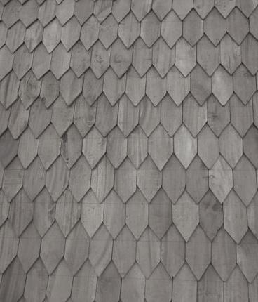 The dark sirap roof The light wood veneer for wall