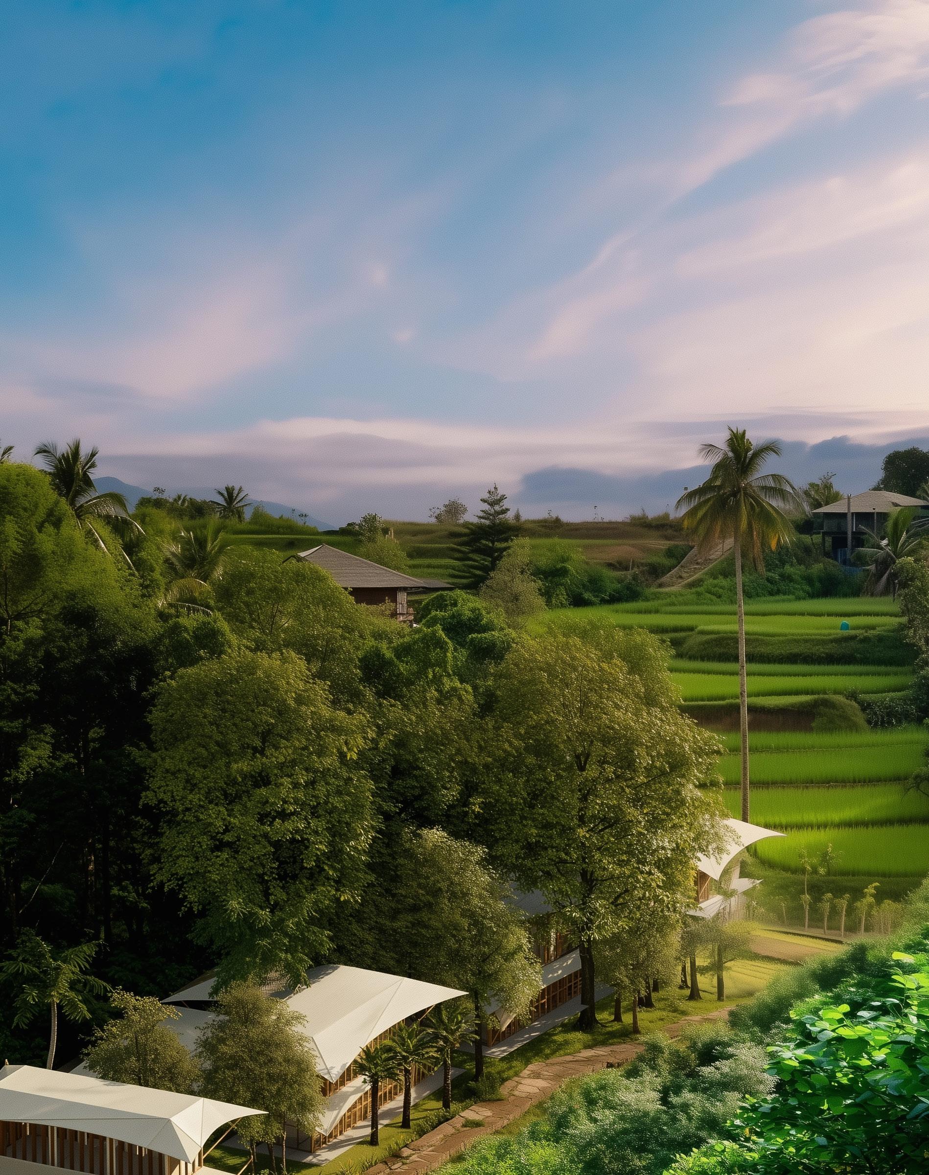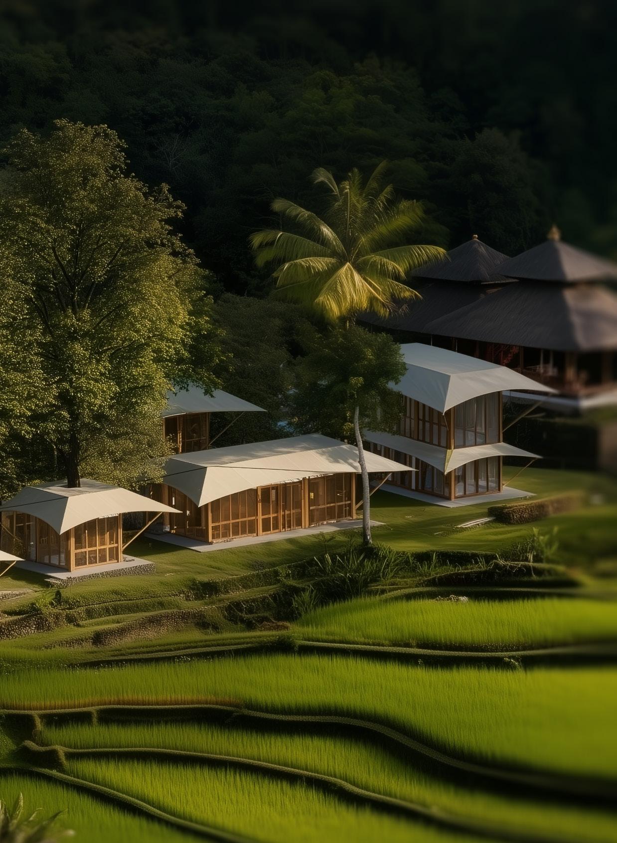 Nestled in Kaba-Kaba village, Tabanan Regency (30 minutes from Canggu) the land is surrounded by rice terraces, coconut trees, and sacred water temples.