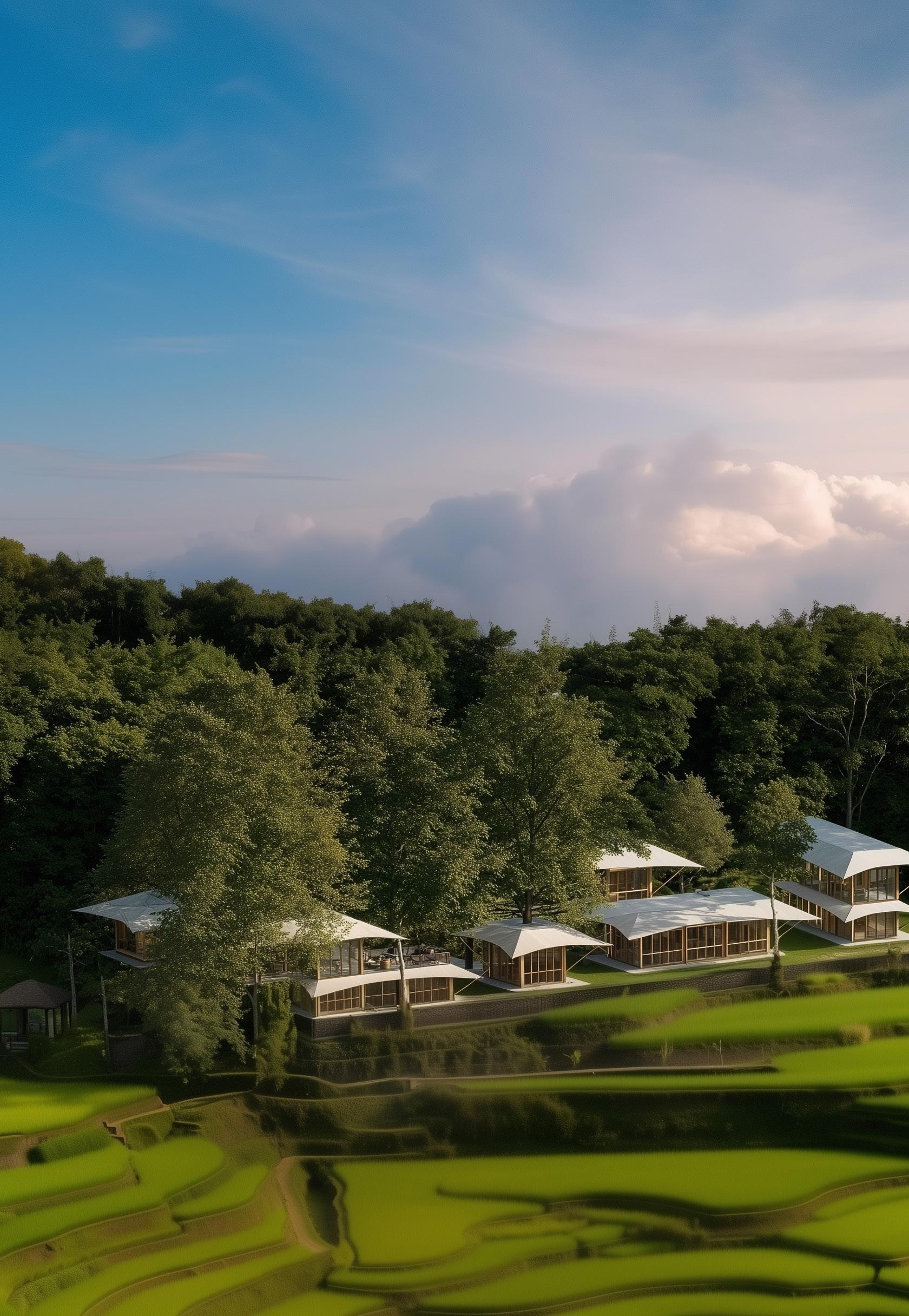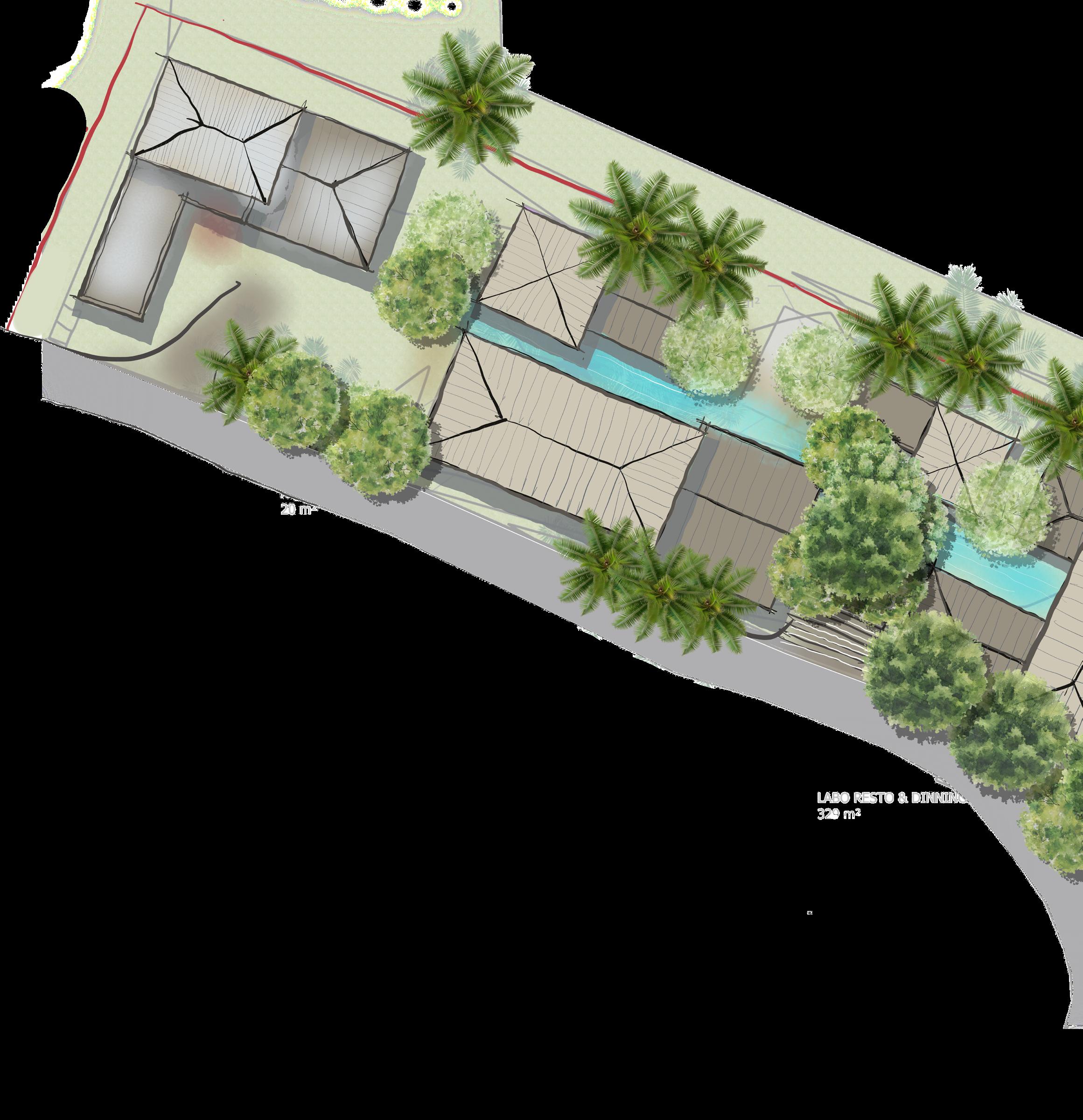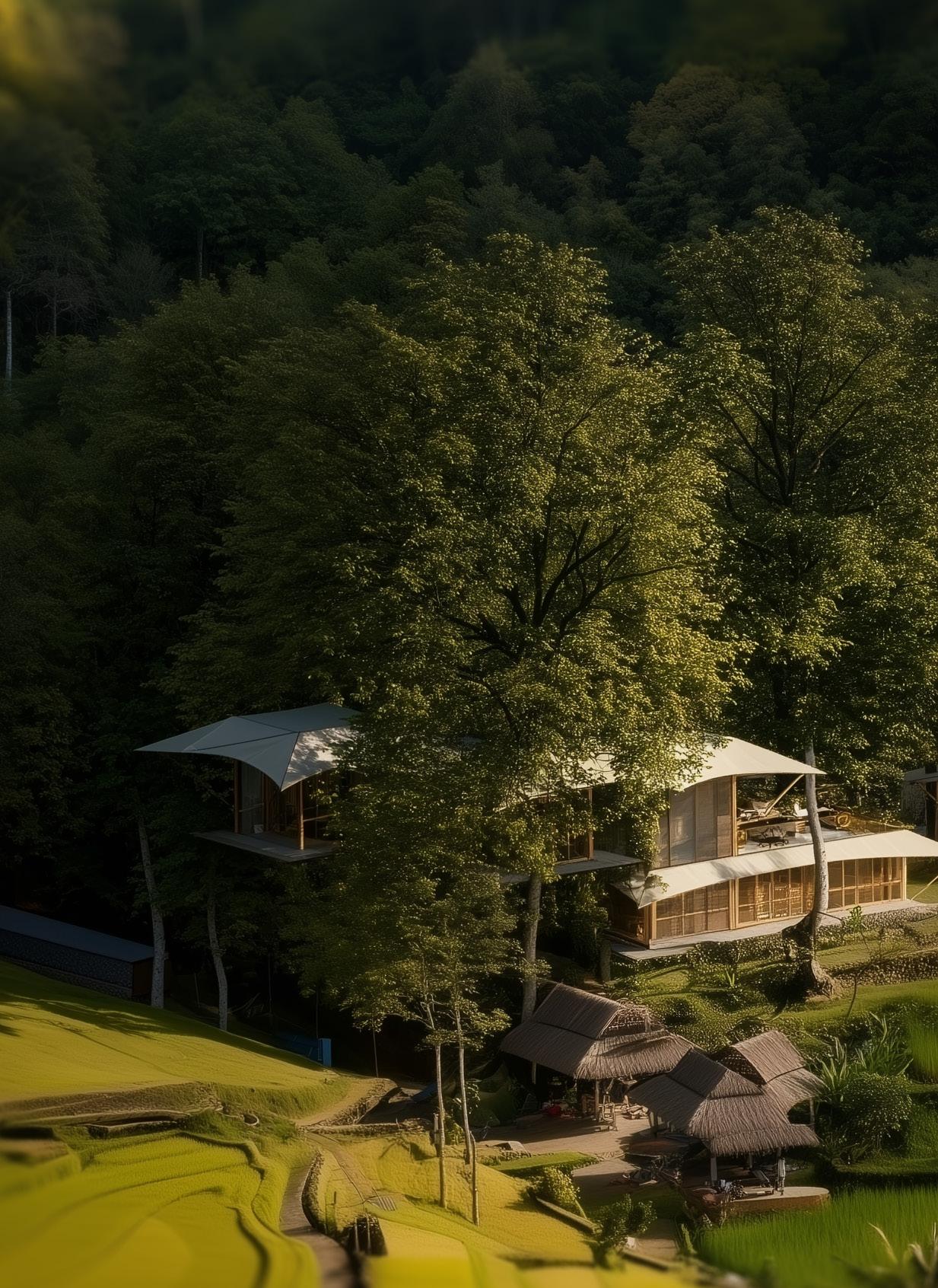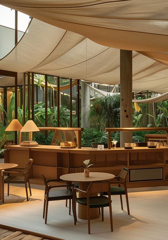 Beneath the acacia, a communal hearth combining the Labo Kitchen, wellness facilities, and social gathering spaces. It is here that wellness, food, and human connection intertwine — a communal hearth where the scent of earth meets the aroma of healing cuisine. The Labo Kitchen serves as both creative studio and gathering table, blending nutrition, ritual, and dialogue. Around it, open pavilions host yoga, meditation, and holistic treatments, each space softly illuminated by natural light filtering through the leaves.
