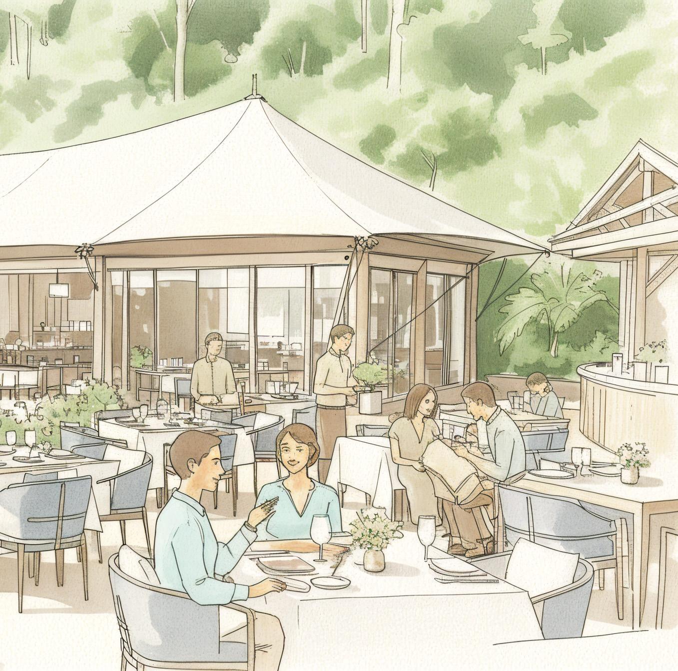 The restaurant : 9700 m2 Treathment Center : 4050 m2