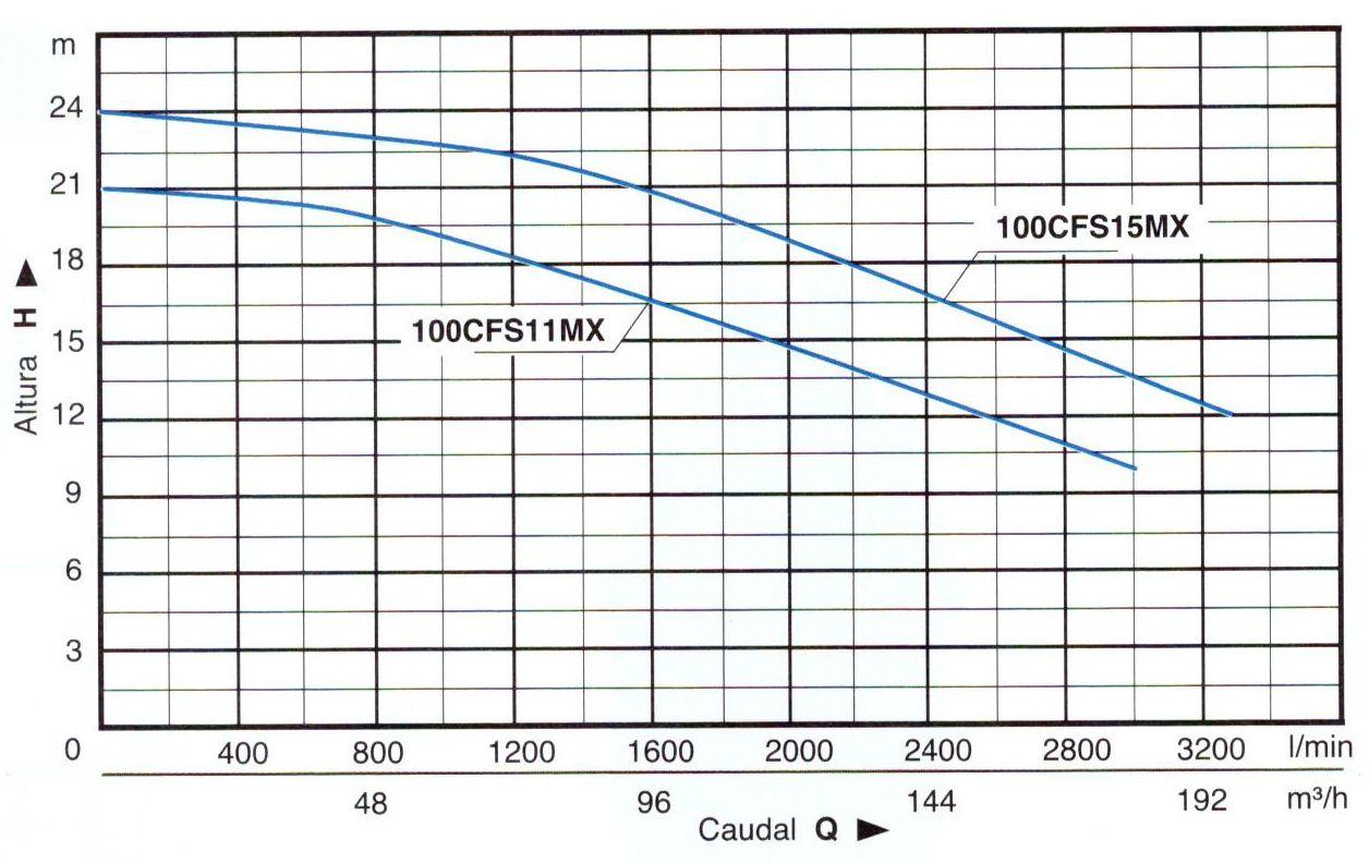 CATALOGO F & Q OCT/2022 69 Bomba Sumergible Línea Americana para Agua Sucia CLAVE MODELO POTENCIA MOTOR H MÁX RANGO OPERACIÓN DESC PASO SÓLIDOS Dimensiones Peso HP KW H (m) Q (l/m) 1116 100CFS11MX 11 8 3F 220V 21 20 10 720 3000 4" 3" 508x416x860 125Kg 1117 100CFS15MX 15 11 3F 220V 24 22 dic 1200 3300 4" 3" 508x416x860 130Kg Correo: xbombas@gmail.com Telefono: 55 5378 7190 http://tiendabombasfq.com/