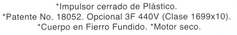 CLAVE MODELO POTENCIA MOTOR H MAXIMA Conexiones Dimensiones Peso HP W SUCC DESC