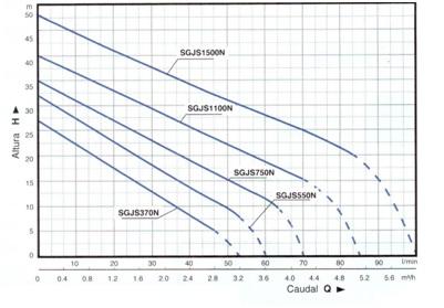 CLAVE MODELO POTENCIA MOTOR H MÁXIMA RANGO OPERACIÓN Conexiones Dimensiones Peso HP W H (m) Q (l/m) SUCC DESC 2504 SGJW37 ½ 370 1F 127V 32 30/10 10/40 NPT 1” NPT 1" 360x160x180 9Kg 2505 SGJW55 ¾ 550 1F 127V 40 36/13 16/40 NPT 1” NPT 1" 440x180x210 16 5Kg 2506 SGJW75 1 750 1F 127V 46 44/15 20/84 NPT 1” NPT 1" 440x180x210 17 5Kg 2507 SGJW110 1½ 1100 1F 127V 52 50/20 20/88 NPT 1” NPT 1" 440x180x210 18Kg