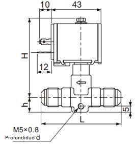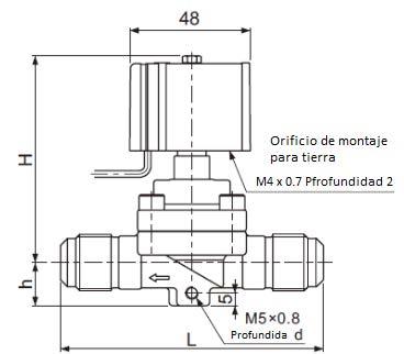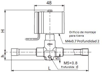 Deberá conec tarse la entrada en el lado de alta presión, de tal forma que el fluido siga la dirección de la flecha marcada en el cuerpo. Deberá ser instalada en línea horizontal, puesto que ha sido diseñada para operar en posición ver tical. Es recomendable usar un filtro (100 mallas por pulgada), en la tubería antes de instalar la Válvula Solenoide No