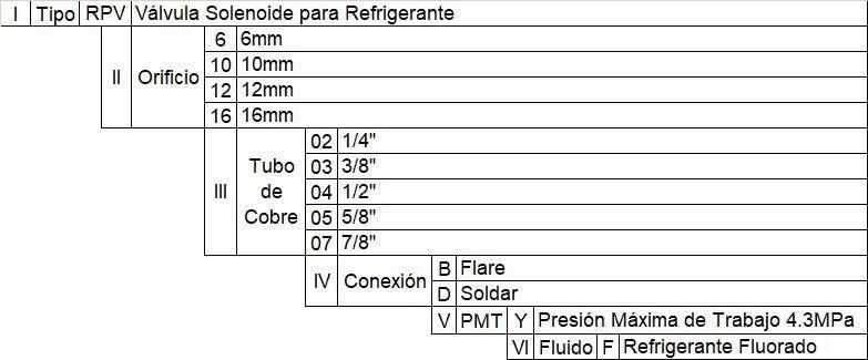 Tipo RPV Válvula Solenoide para Refrigerantes EL MODELO SE DETERMINA DE LA SIGUIENTE FORMA EJEMPLO: RPV F 6 03 B Y F I II III IV V VI VII DIMENSIONES Correo: xbombas@gmail.com Telefono: 55 5378 7190