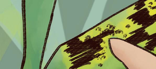 Les taches de cette feuille ont de tout petits poils noirs en forme de Y