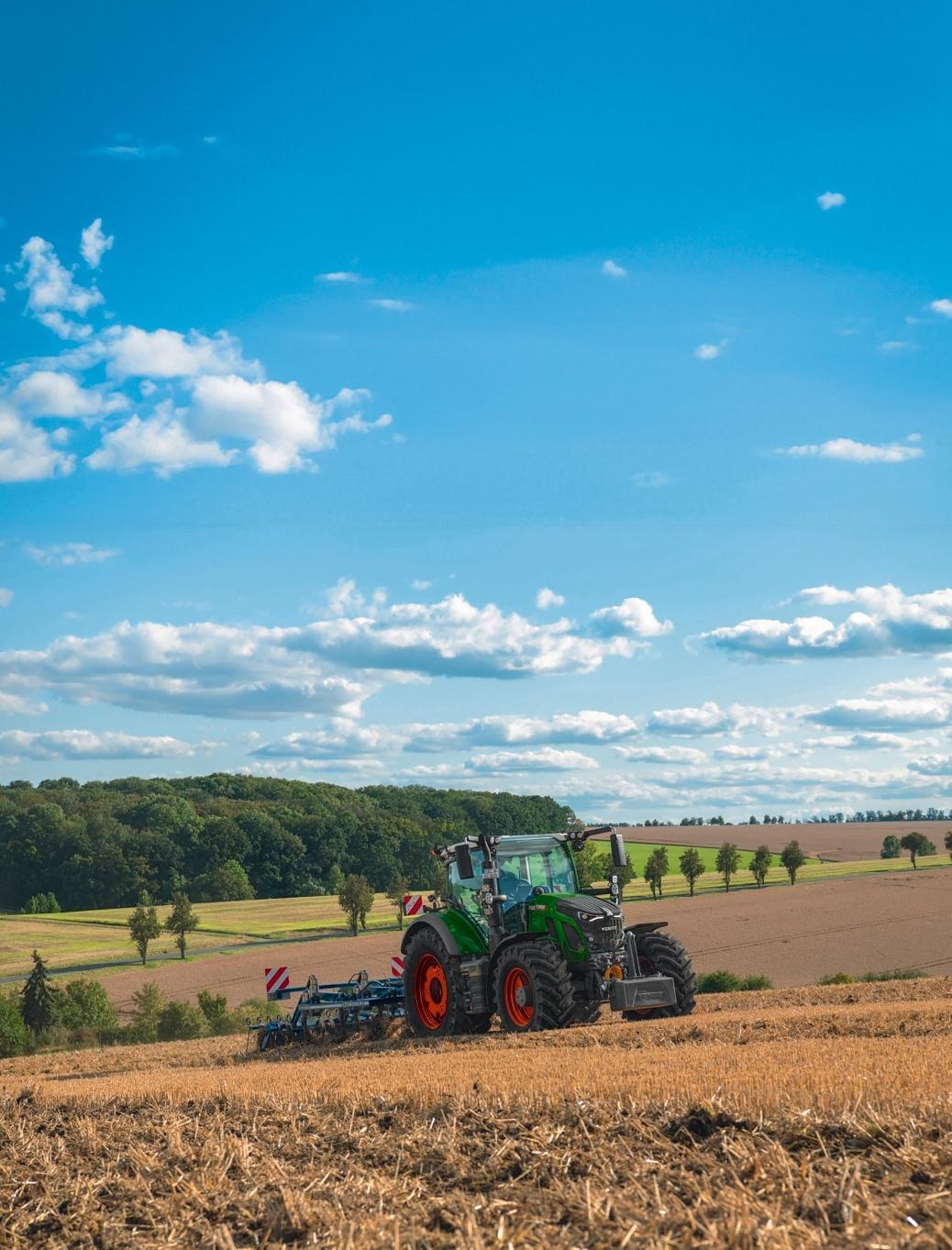 de Fendt. Elle contrôle indépendamment les essieux avant et arrière, et mesure en permanence le niveau de patinage des quatre roues pour réguler la puissance de sortie. Sur les 600, les ingénieurs combinent la transmission avec quatre fonctions clefs : la force de traction maximale, la protection simultanée du sol avec l’usure minimale, et la maniabilité de l’engin. Le contrôle dynamique empêche les roues de patiner, tout en délivrant le maximum de traction. Le groupe motopropulseur élimine donc la commutation manuelle quand le tracteur passe du champ à la route. Ainsi, la boîte VarioDrive gère automatiquement la capacité de traction, en respectant le sol et en limitant l’usure des pneus. Avec un rapport poids/puissance de seulement 34,4 kg par cheval, autant dire que le tracteur se révèle maniable et exerce peu de pression au sol. Selon la tâche à effectuer, l’opérateur peut le lester, à l’avant comme à l’arrière, grâce aux masses de roues. Son PTAC l’autorise à grimper à 13,5 t, le faisant évoluer vers un tracteur lourd pour les applications qui le nécessitent. Traduit en charge utile, cela donne 5,8 t. Le télégonflage VarioGrip est intégré d’usine. ■
