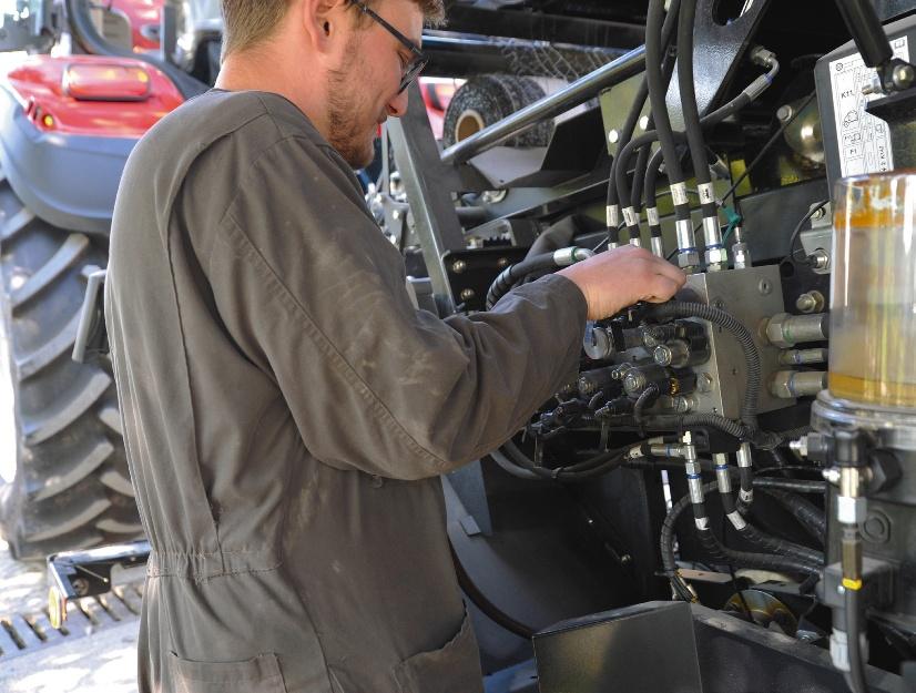 emmener l’outil, ce qui augmente son accessibilité aux exploitations de petites tailles. La suspension DuoGrip assure le suivi du sol quelle que soit la largeur de travail. Le vérin de blocage stabilise le lamier en position fourrière et au transport. Le réglage hydraulique de la pression d’appui au sol est intégré de série, et facilement lisible depuis la cabine grâce au manomètre. Pour plus de confort, il est possible, en option, de régler sa valeur via le distributeur double effet, sans quitter le siège, donc.