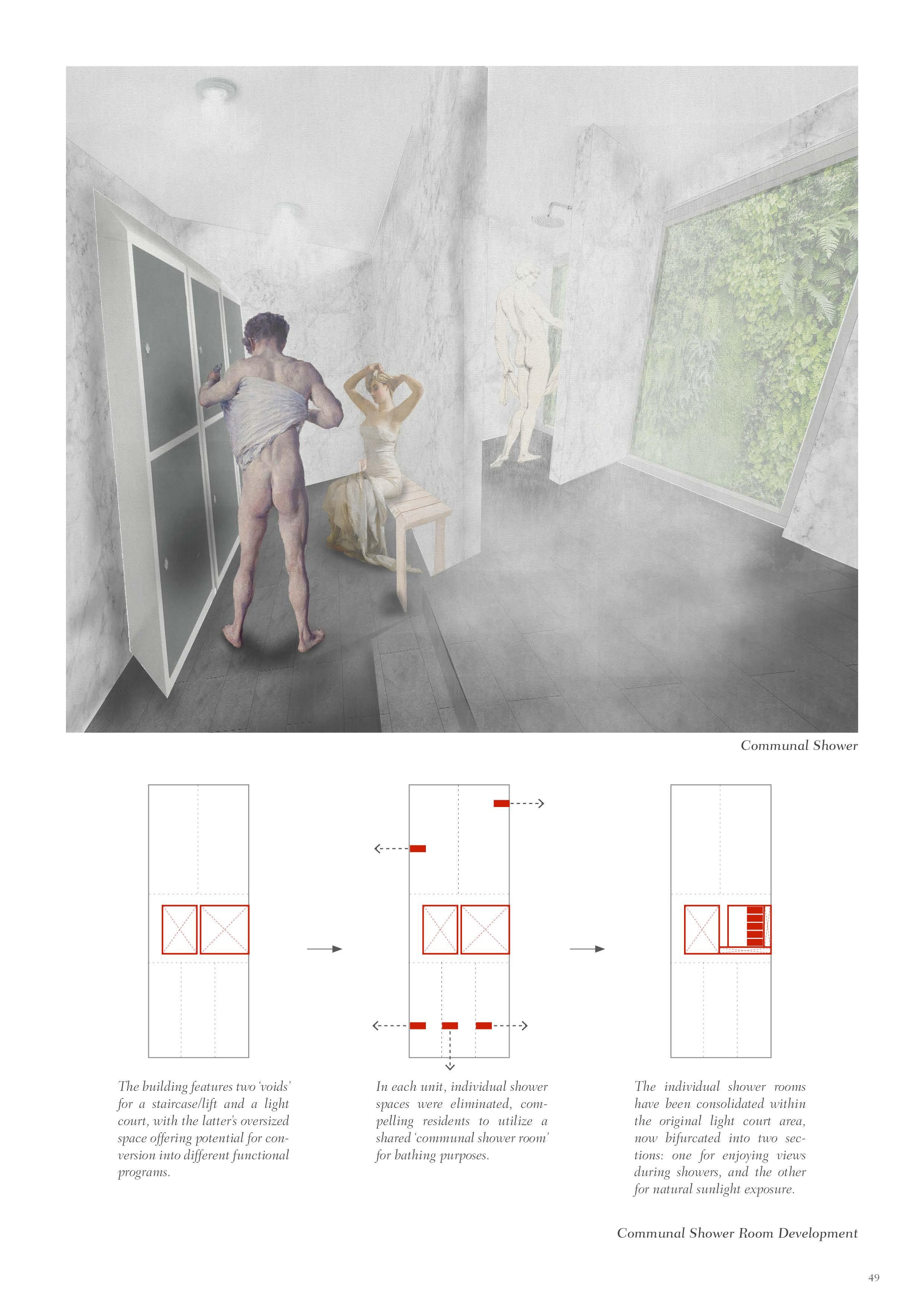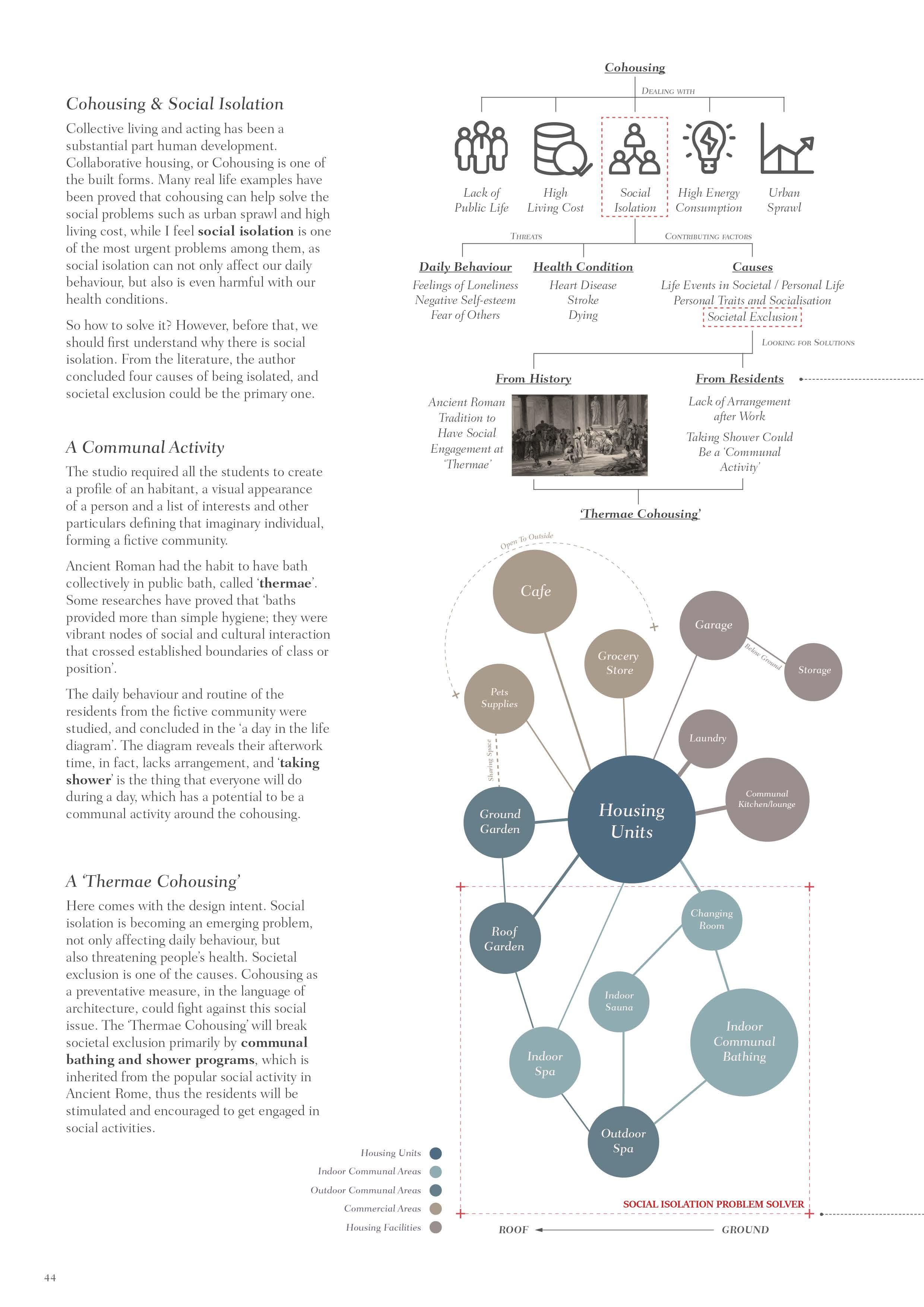 iss u e. T h e T h e rm ae Co h o u s in g' w ill brea k soc ie t a l ex clu s io n prim a ril y b y communal bathing and shower programs , w hi c h is inh e rit e d fr o m th e p o pul a r soc ia l ac ti vity in