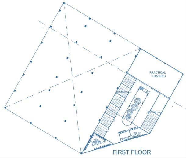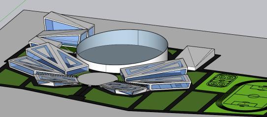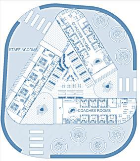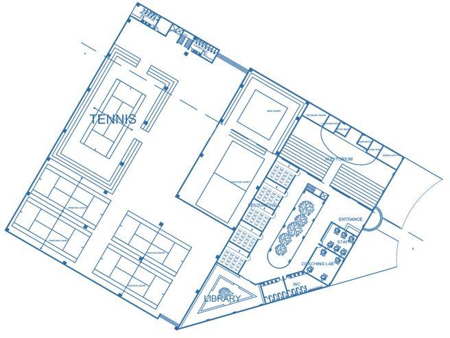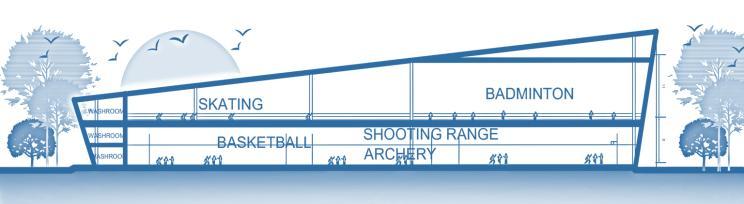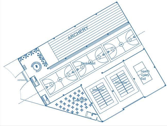"My design concept draws inspiration from the journey of a sportsman's personality, where the undulating slant roofs represent the highs and lows encountered in every game. The pressure to perform ignites a transformative spark, symbolized by the skilfully integrated skylights. Emphasizing the importance of unity in team sports, i've adopted a centralized plan, which not only represents the convergence of individual efforts but also embodies the idea of finding one's way. Ultimately, the triumph of victory is celebrated through a trophy-like structure at the heart of the design."