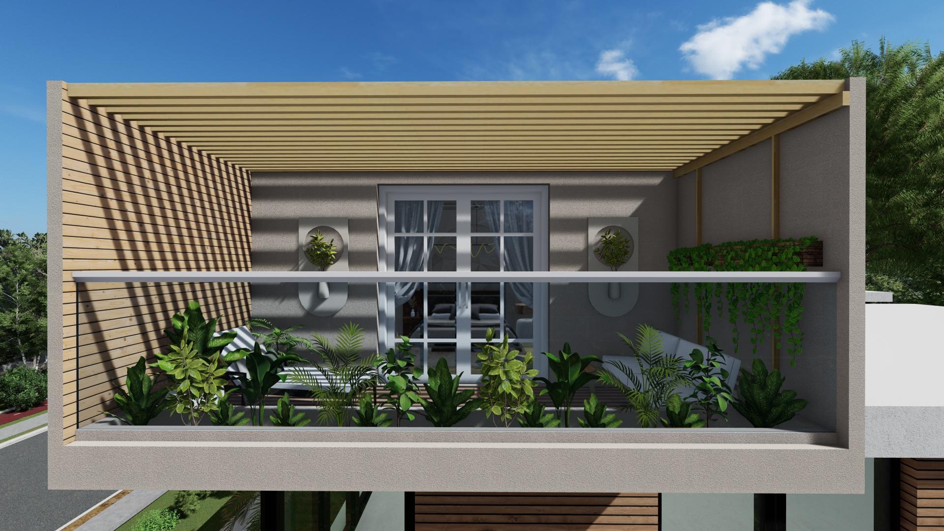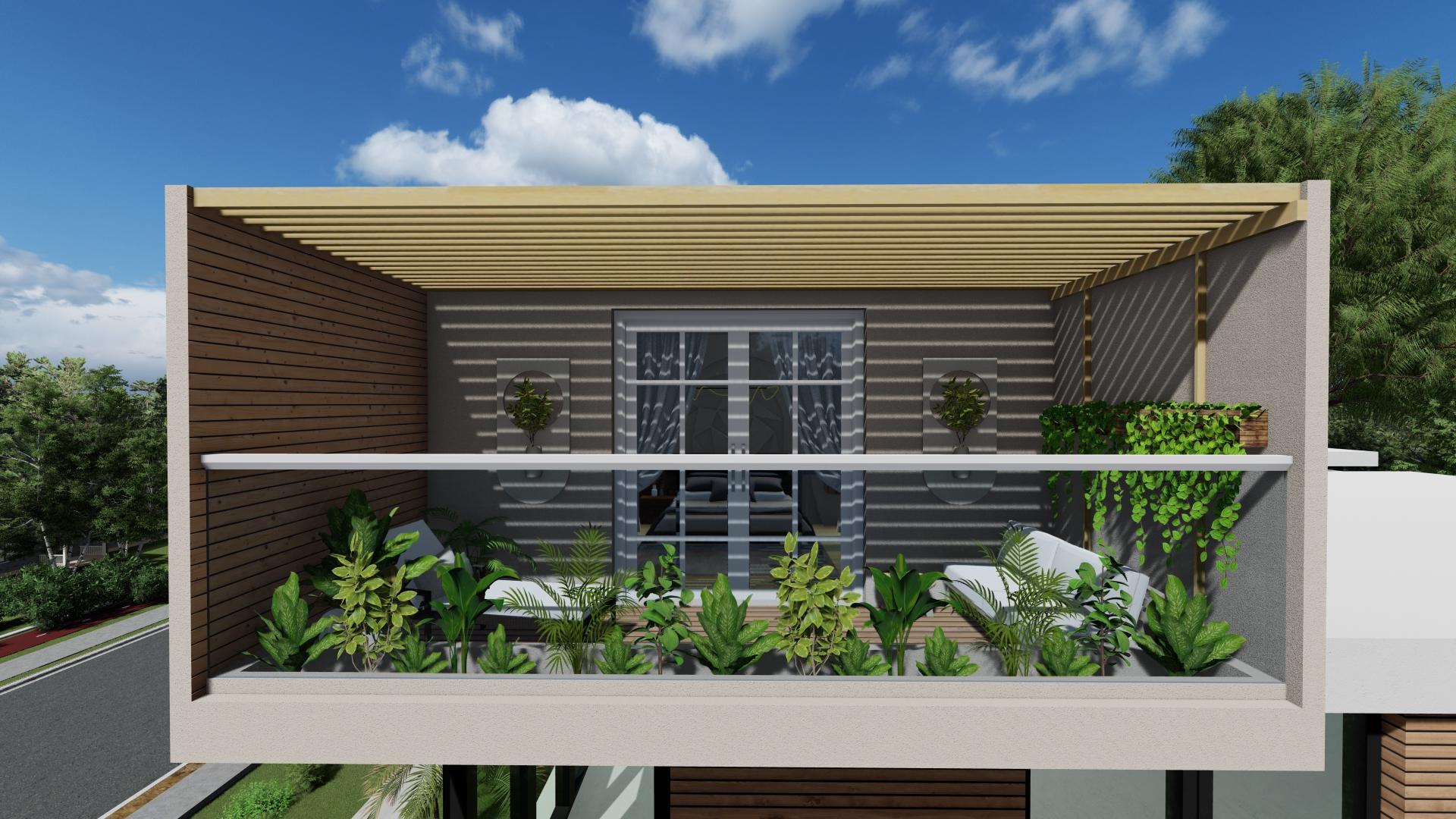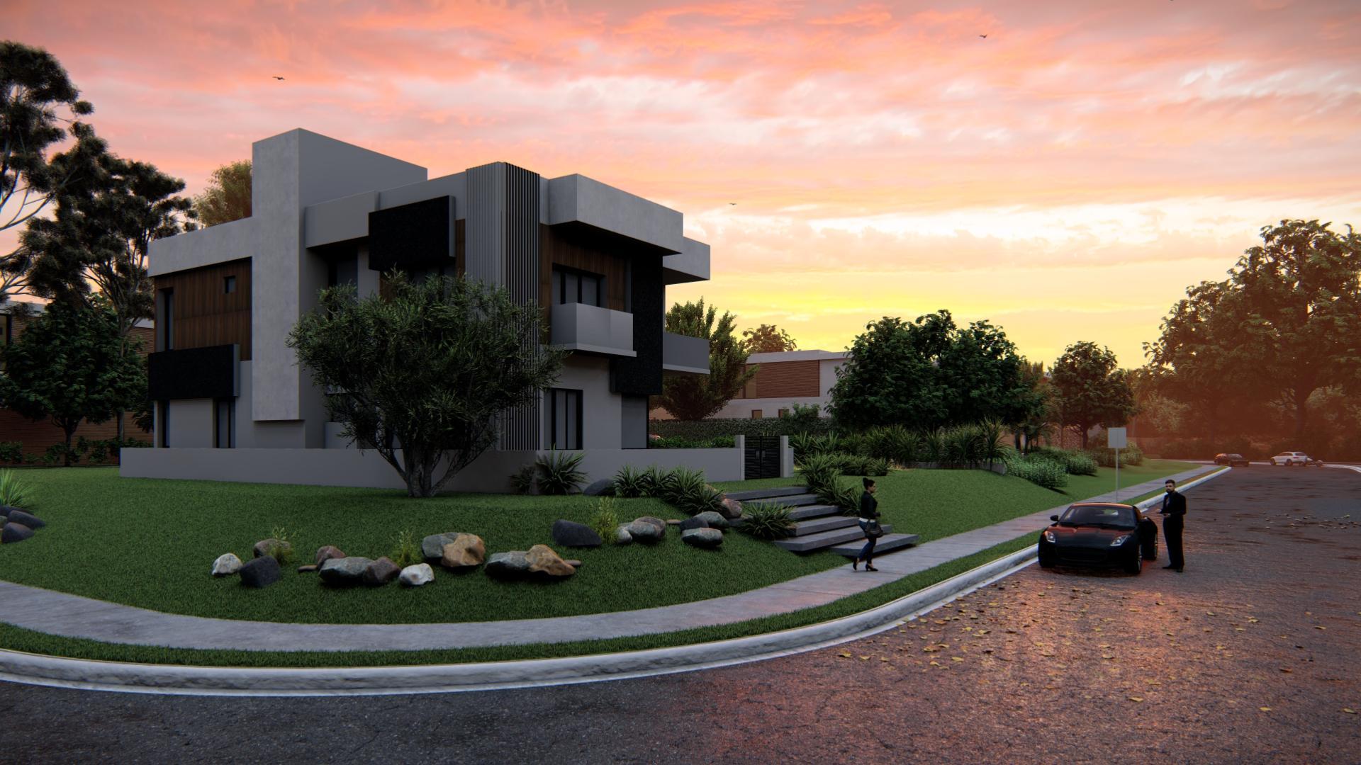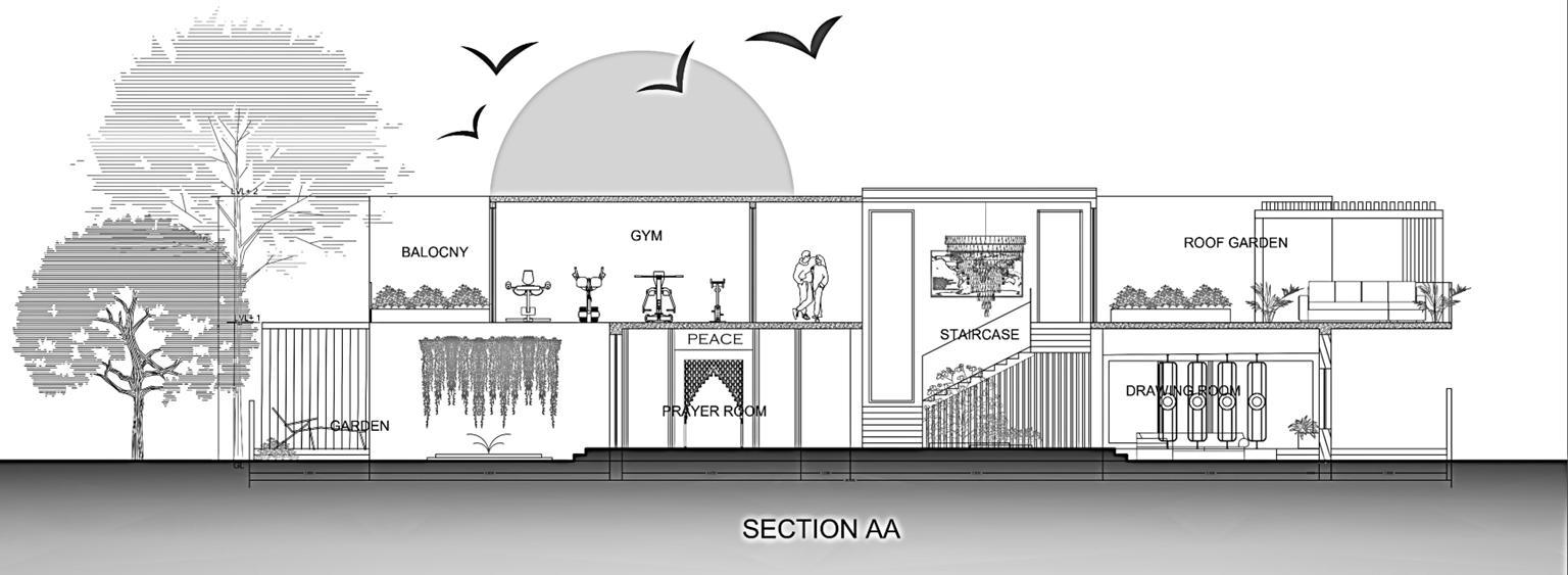“The design features a 3 BHK duplex residence with a ground floor and first floor, featuring a separate staircase providing independent access to the first floor for rental purposes. The design also incorporates a lawn area at the front and a modern elevation as per the client's reference image."