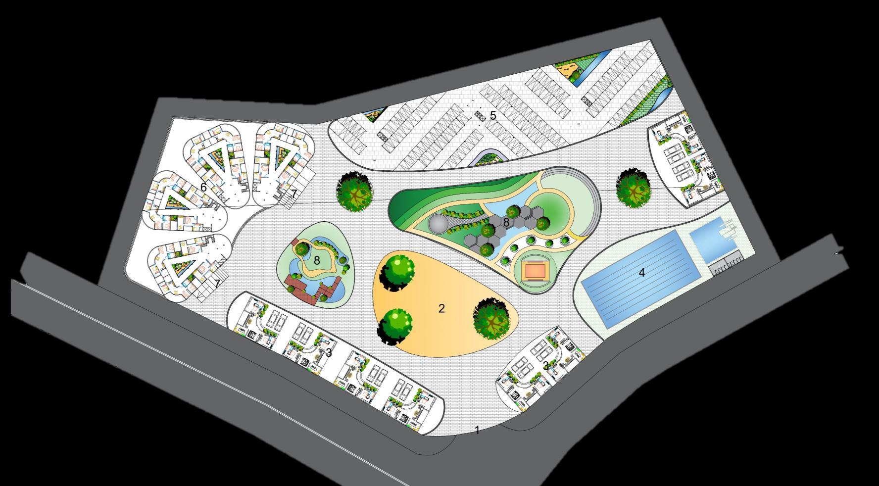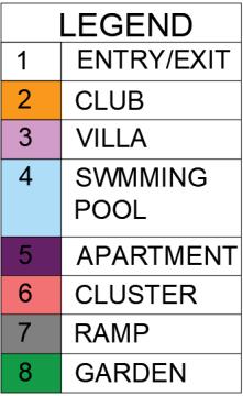 To design a high-density housing complex for HIG, MIG, and LIG groups, integrating individual villas, cluster housing, and apartment, with a focus on sustainability, community interaction, and efficient circulation, while balancing density with green spaces and amenities like a clubhouse.