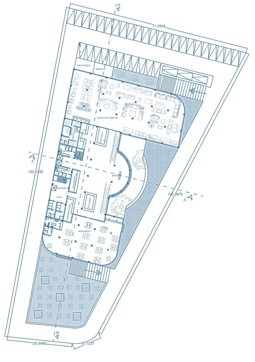 The project involved designing a small, form-oriented complex, with special attention given to the form, lighting, ventilation, and fire safety. Other design considerations included movement, climate, acoustics,