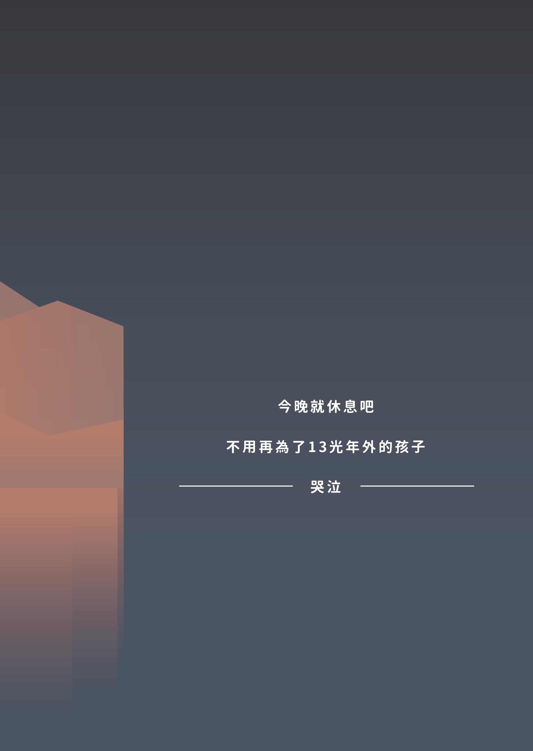 為了理想夢想,習慣了生活的不堪,麻痺了 痛楚,依舊吸吐著氣,沉浸在窒息的空氣中 就這樣吧,算了吧。