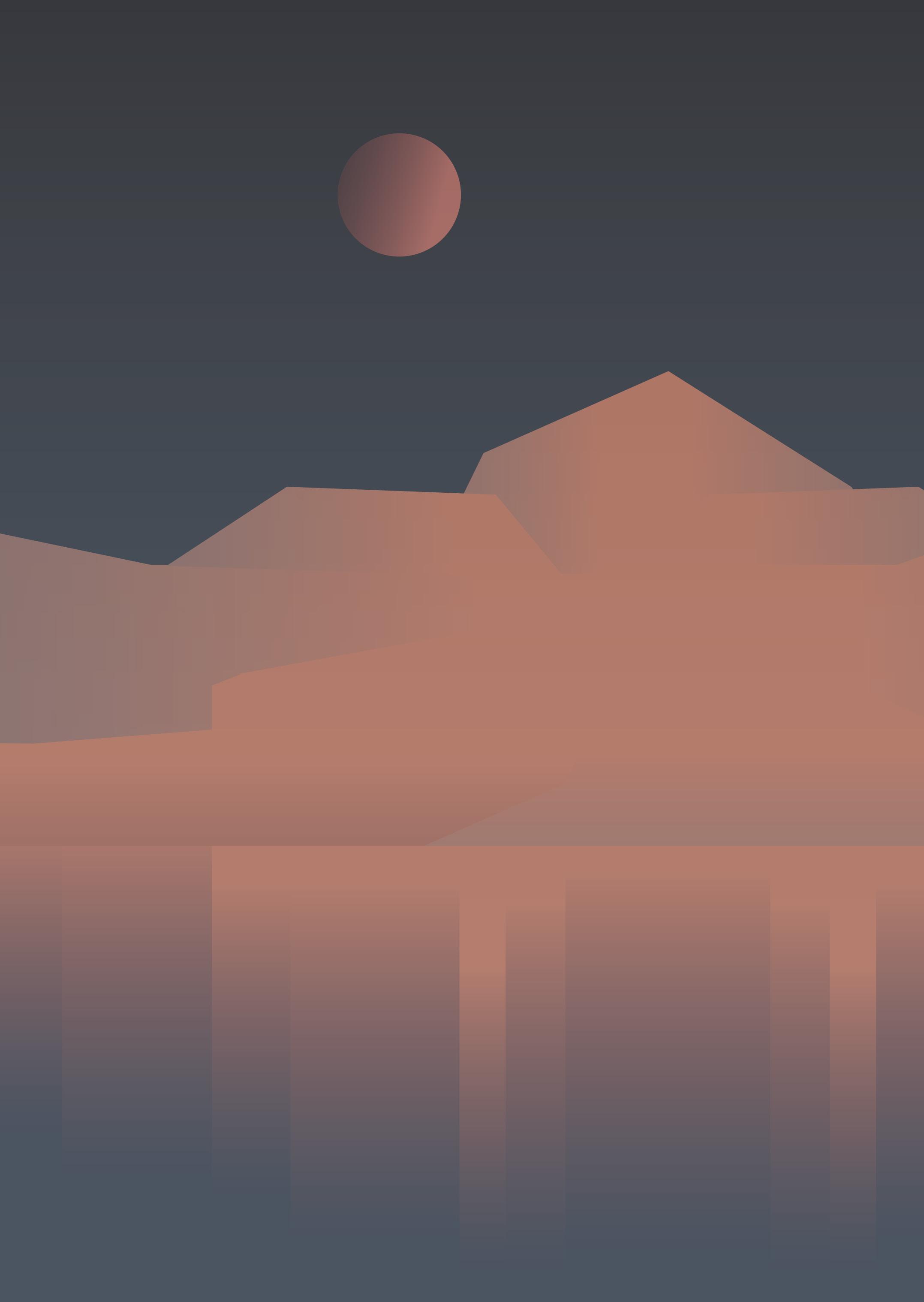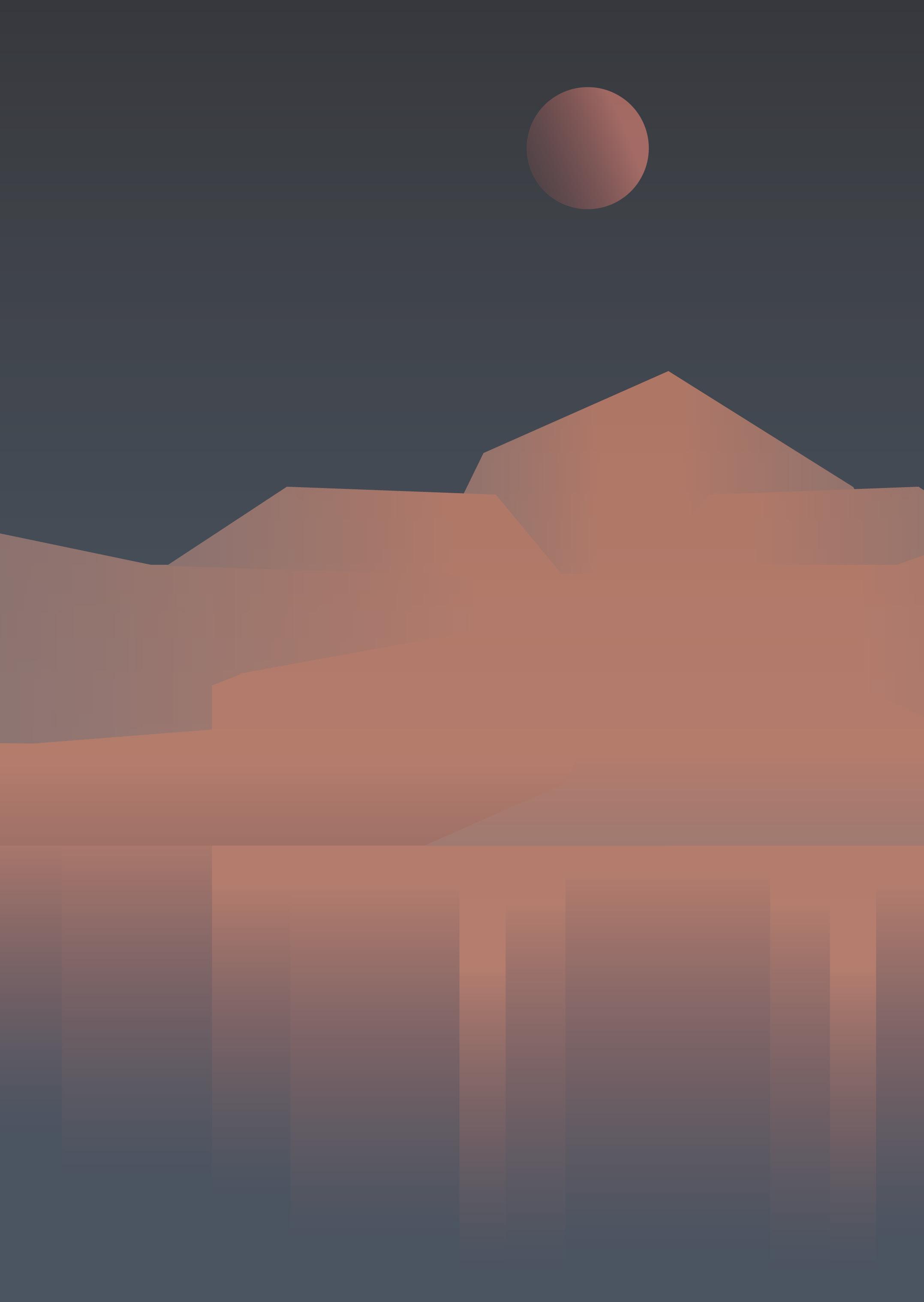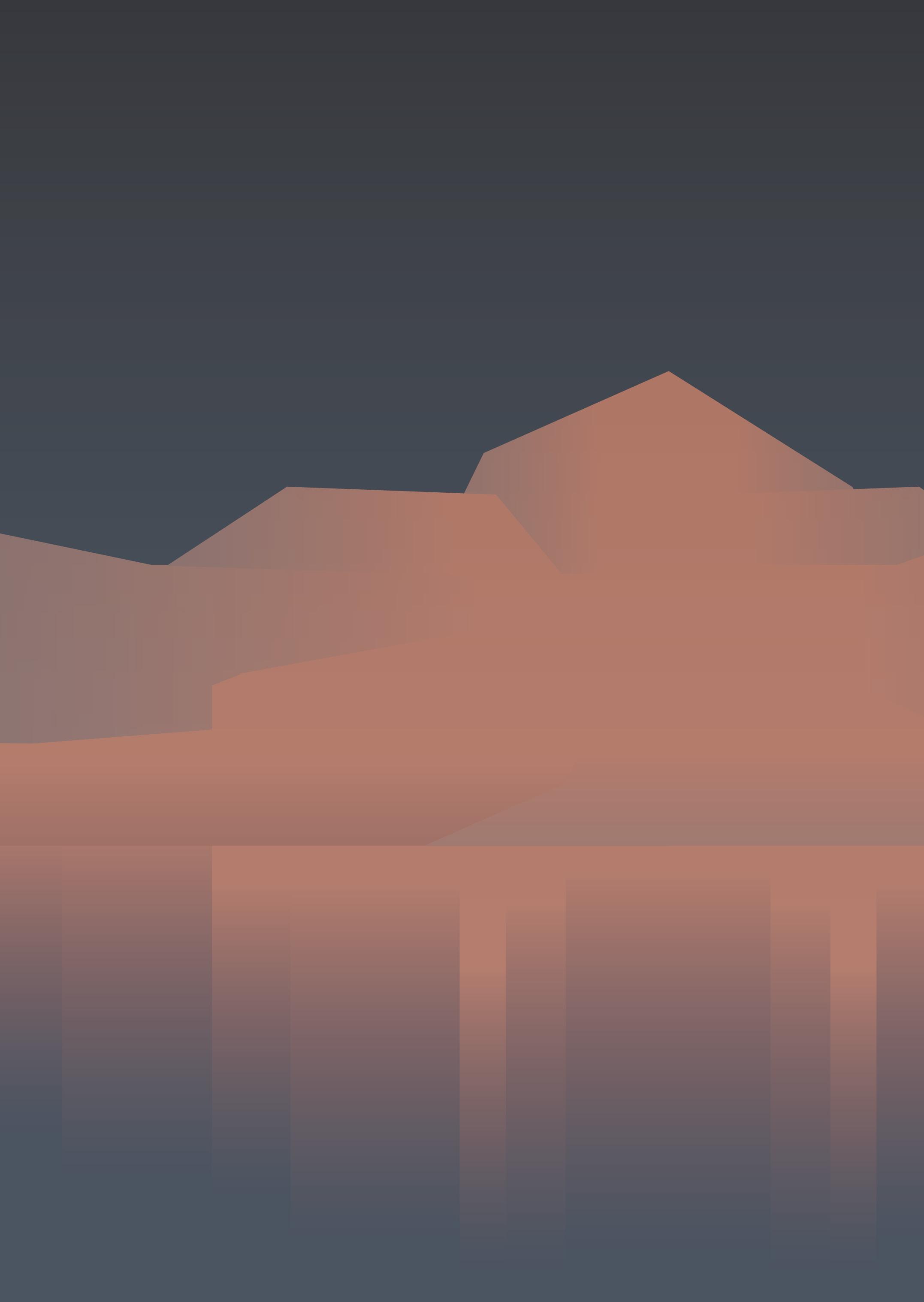 把視角擴大,俯瞰的角度看著群山與河川,山的 層次/等高線/河面的波光共同的表現,最後點 綴上的橋梁,讓畫面能聚焦在俯視上。