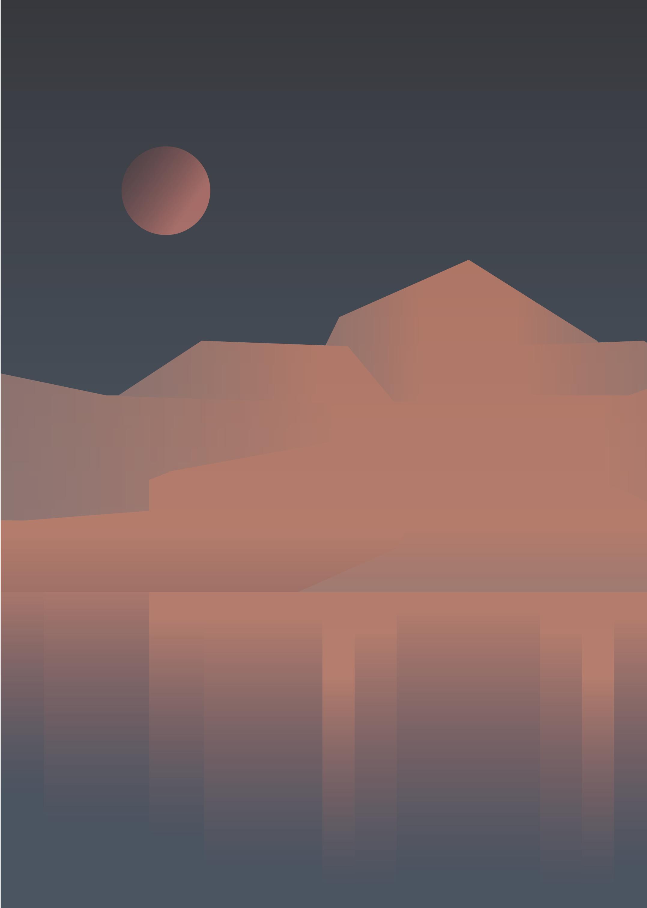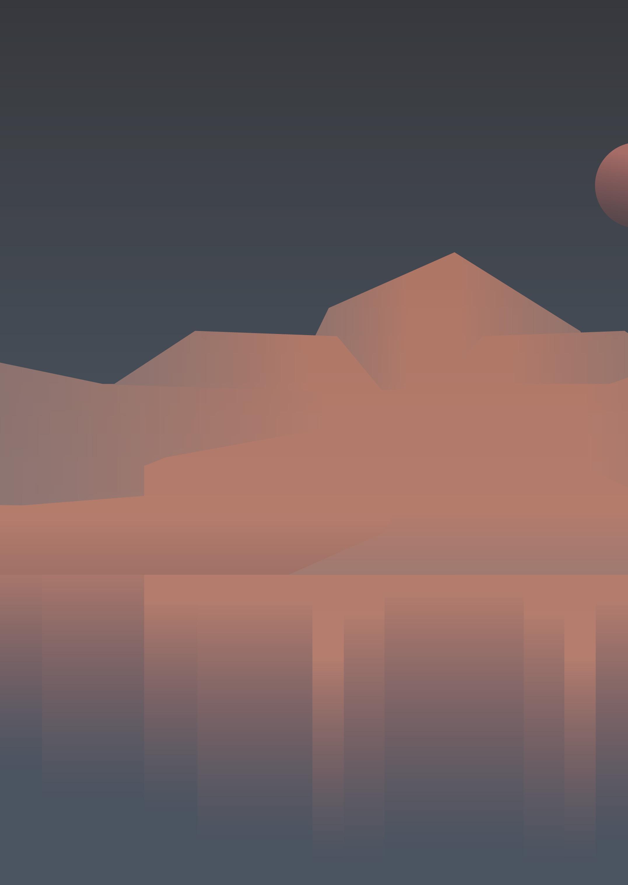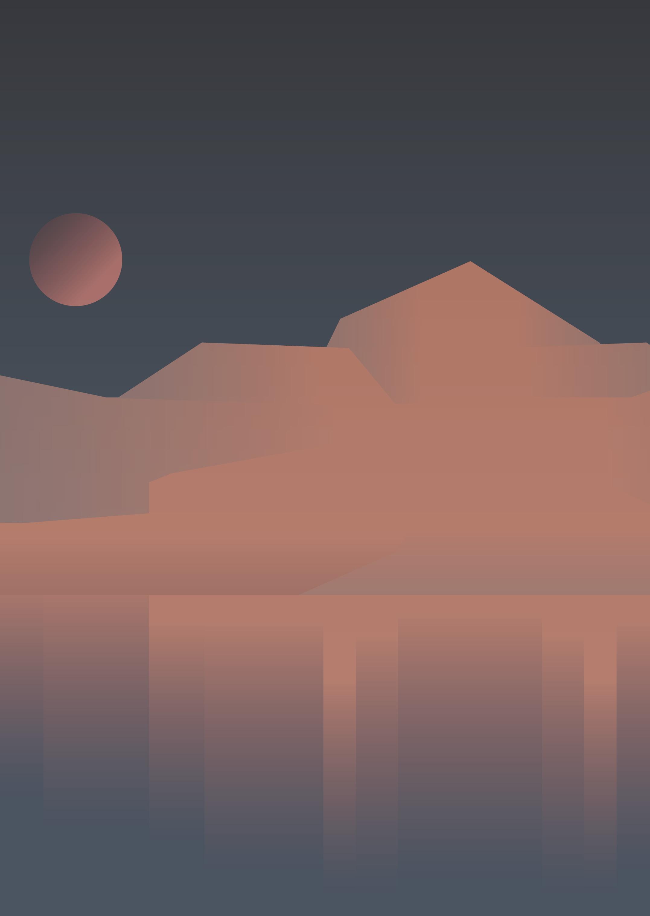 把視角擴大,俯瞰的角度看著群山與河川,山的 層次/等高線/河面的波光共同的表現,最後點 綴上的橋梁,讓畫面能聚焦在俯視上。