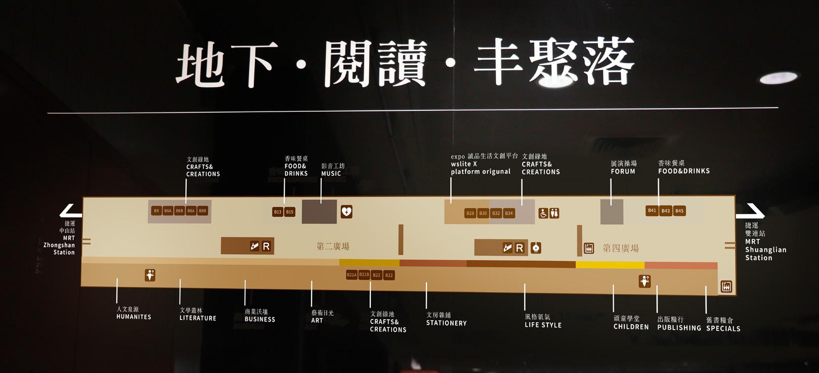 地下書街以誠品為主軸發展,在翻 新之後進駐許多如印刷、唱片等同 樣氣氛的店家,希望藉由重新包 裝,讓中山地下書街有一個正式的 LOGO,讓更多人認識這個地方。