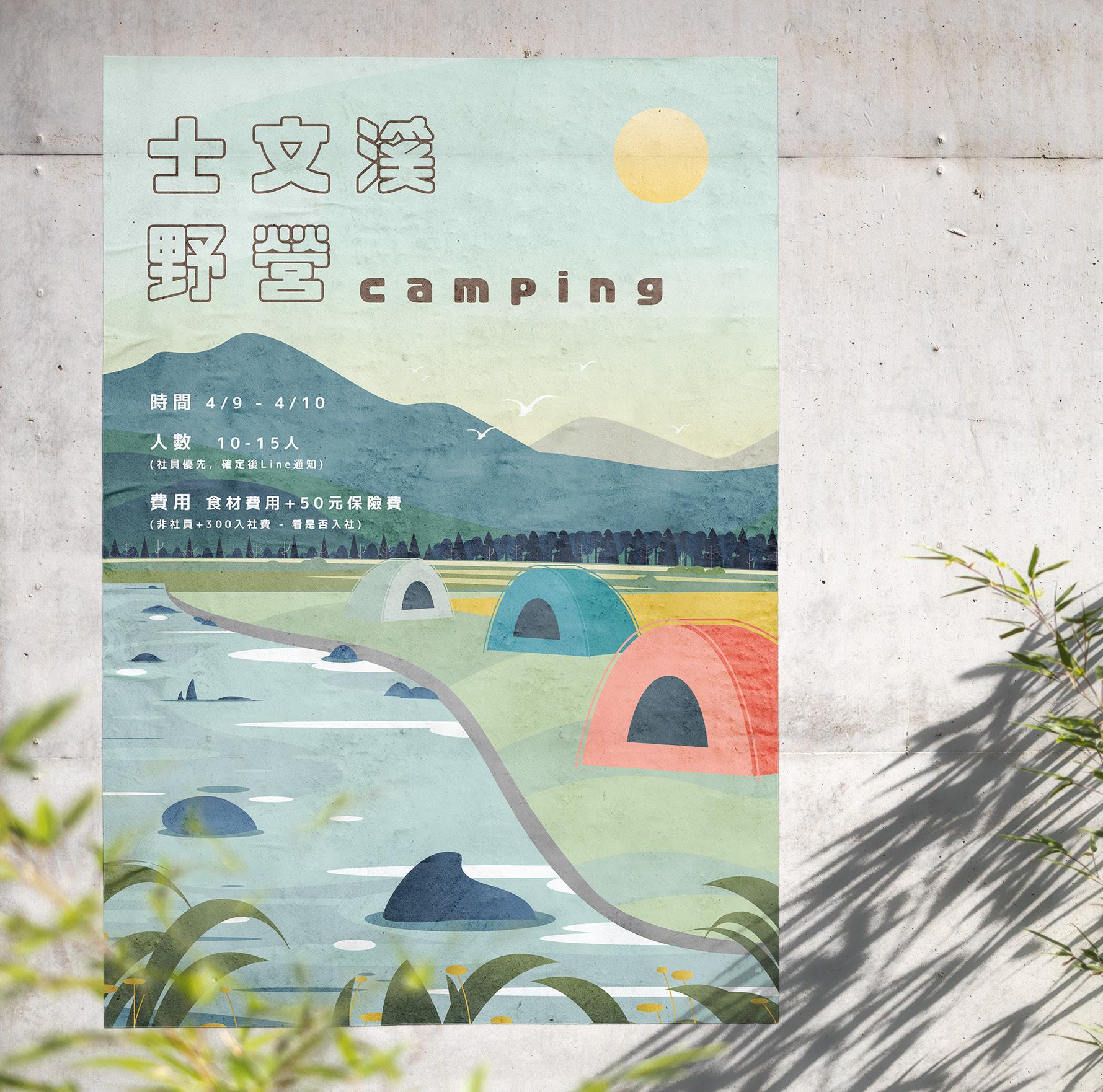 嘗試不同的風格製作,用向量色塊堆疊的 風景圖,以較活潑的顏色來吸引新同學的 目光,達到招生的效益。
