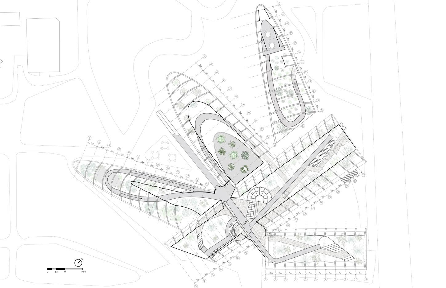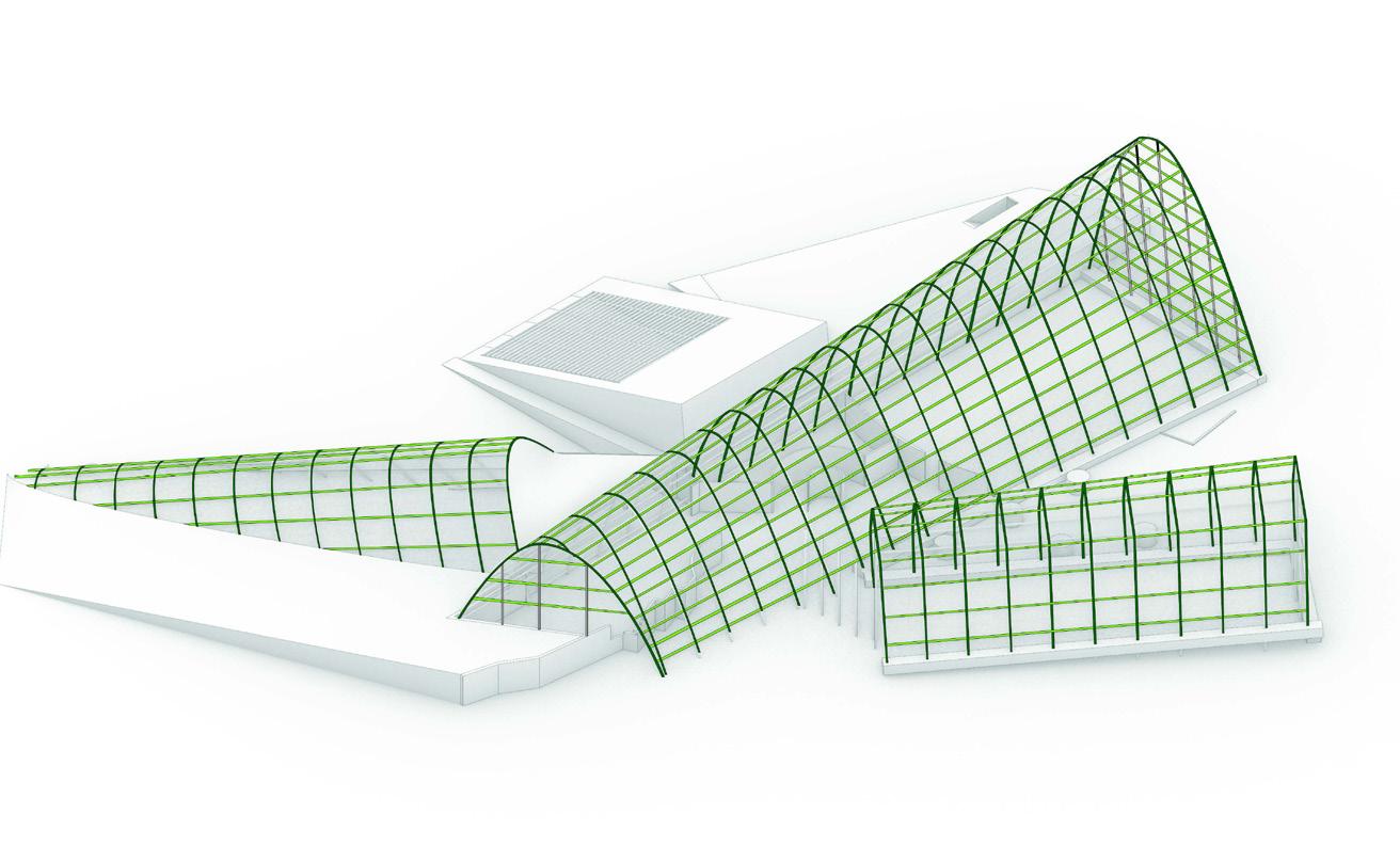5 4 ROOF PLAN ROOF PLAN 1:300 Programs 1.Entrance 2.Succulent House 3.Cold house 4.Tempered House 5.Tropical House 6.Nursery 7.Community Garden 6 EXPANSION FIRST FLOOR PLAN Programs 1.Entrance 2.Succulent House 3.Cold house 4.Tempered House 5.Tropical House 6.Nursery 7.Offices 8.Bathrooms 9.Community Garden FIRST FLOOR PLAN 1:300 SECOND FLOOR PLAN ROOF PLAN 1:300 Programs 1.Entrance 2.Succulent House 3.Cold house 4.Tempered House 5.Tropical House 6.Nursery 7.Community Garden 4 6 N 10 11 12 13 3.0000 3.0000 3.0000 3.0000 3.0000 3.0000 3.0000 3.0000 3.0000 3.0000 3.0000 3.0000 0.00m 1.80m 3.60m 5.40m 7.20m 9.00m 10.8m 12.6m 0510 20 30 10 11 12 13 0.00m 1.80m 3.60m 5.40m 7.20m 9.00m 10.8m 12.6m 0510 20 30 10m 2.50 SECTION TWO 1:200 View of the Community Garden and Temperate House EXPANSION SECTION N 10 11 12 3.0000 3.0000 3.0000 3.0000 3.0000 3.0000 3.0000 3.0000 3.0000 3.0000 3.0000 0.00m 1.80m 3.60m 5.40m 7.20m 9.00m 10.8m 12.6m 0510 20 30 10m 2.50 SECTION ONE 1:200 View of the Nursery Offices and Temperate House EXPANSION SECTION N 10 11 12 0.00m 1.80m 3.60m 5.40m 7.20m 9.00m 10.8m 12.6m 0510 20 30