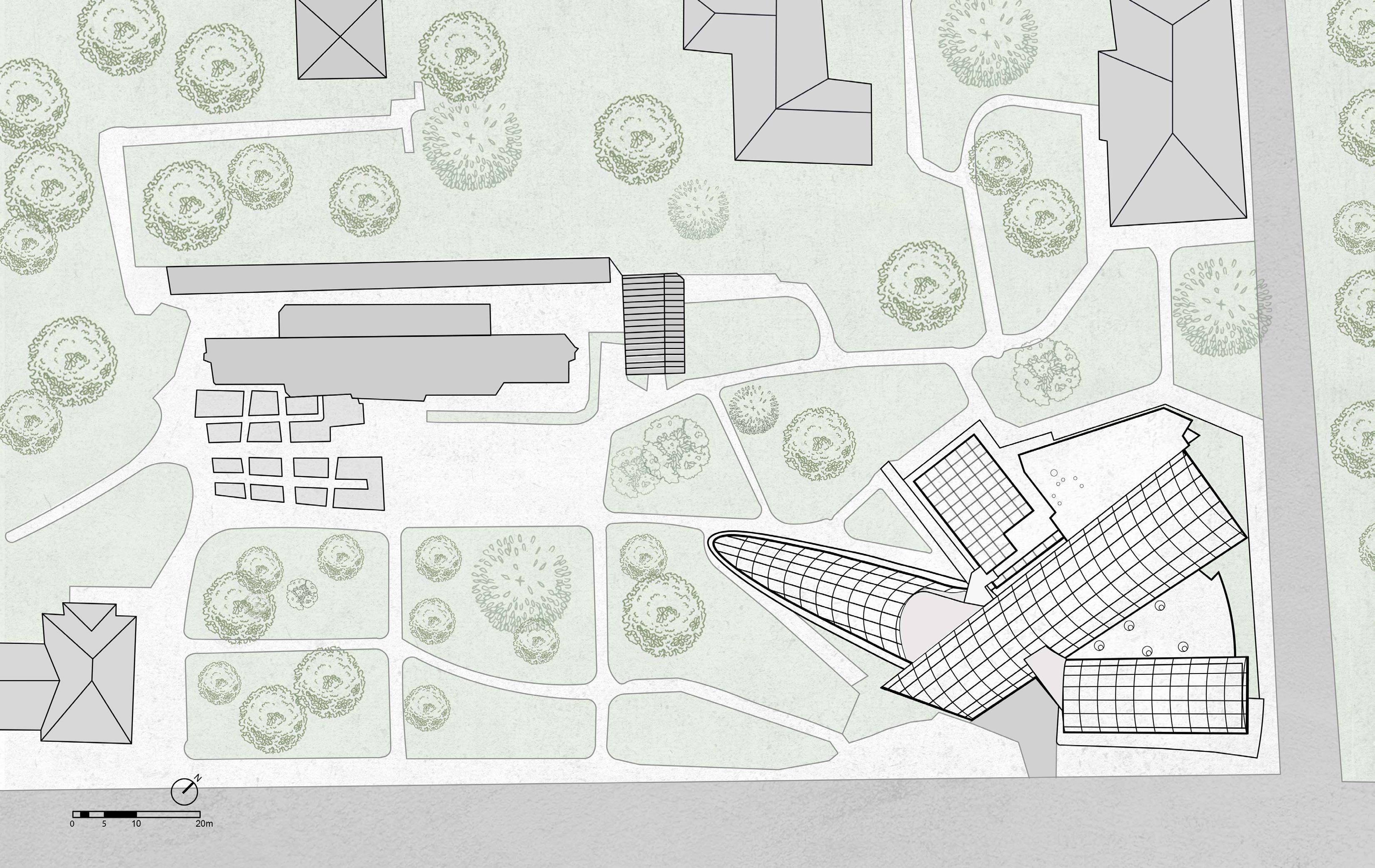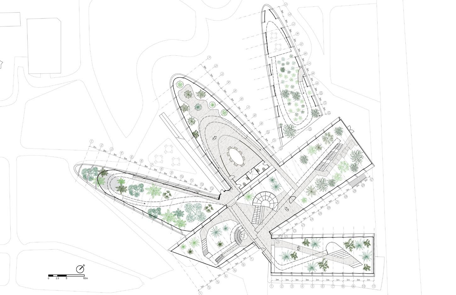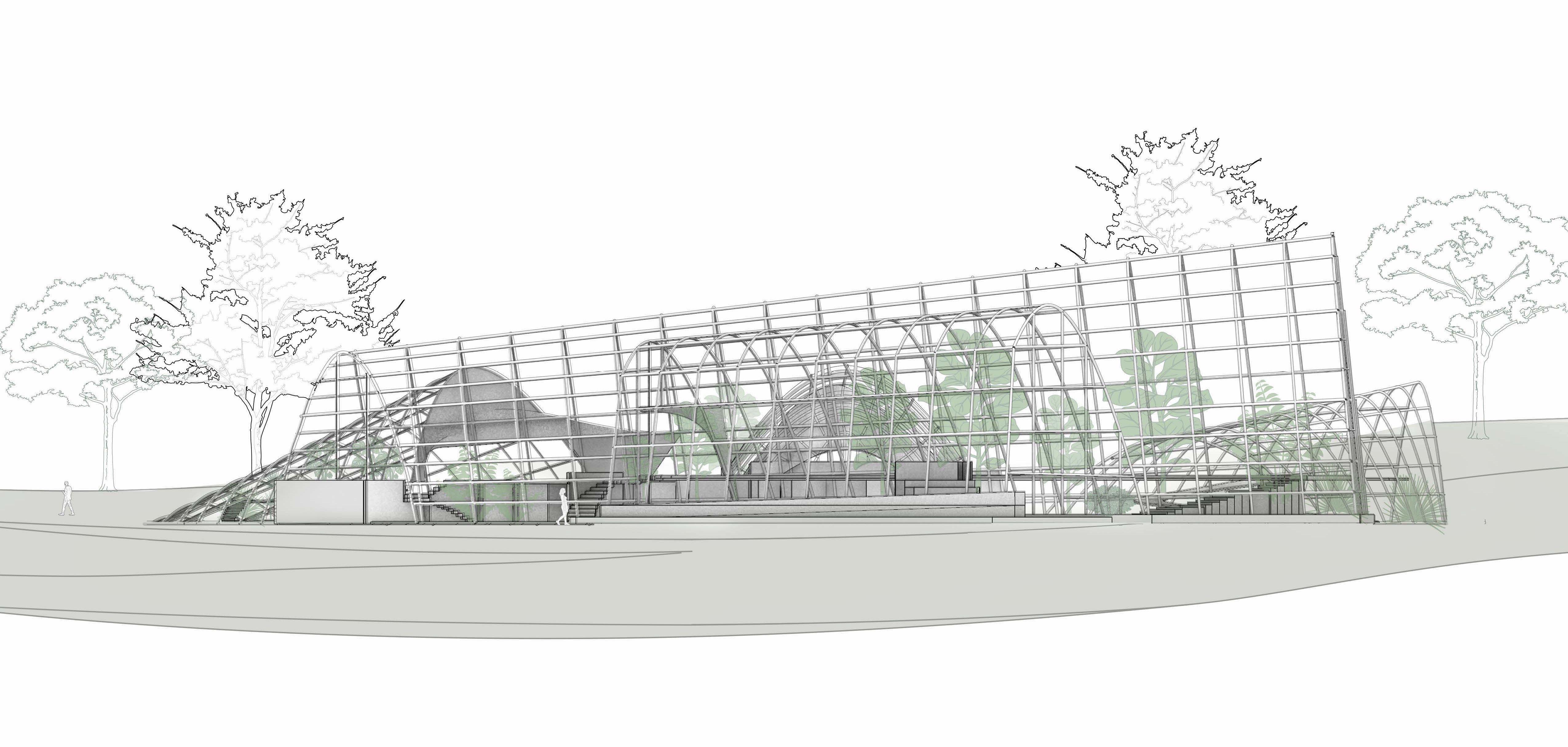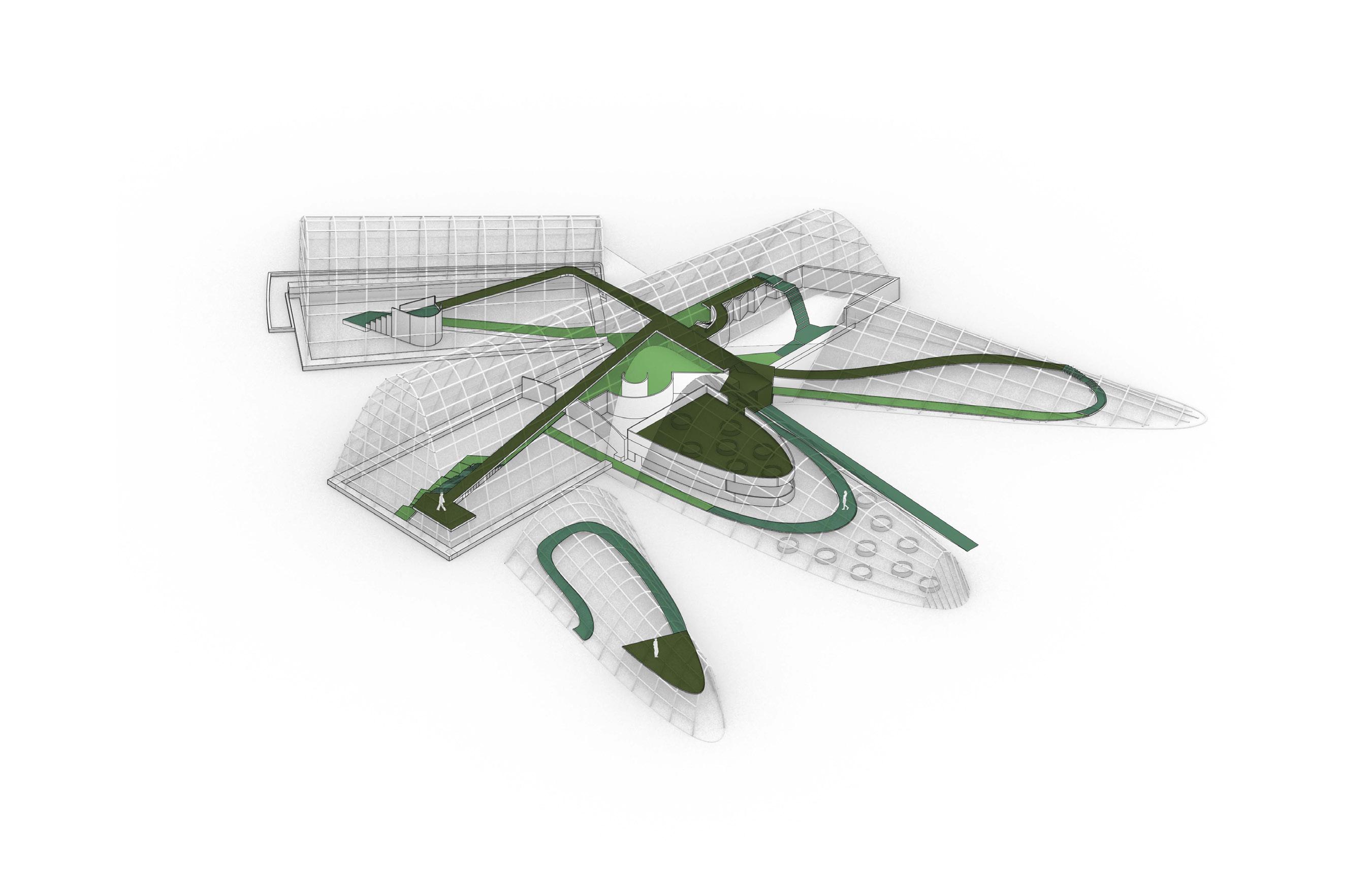 The goal of our expansion and adaptation is to integrate the new buildings with the existing ones while improving the technology and innovation of the new structures. Since the existing botanical garden is located at a University, we decided to incorporate a community garden as the complementary program.
