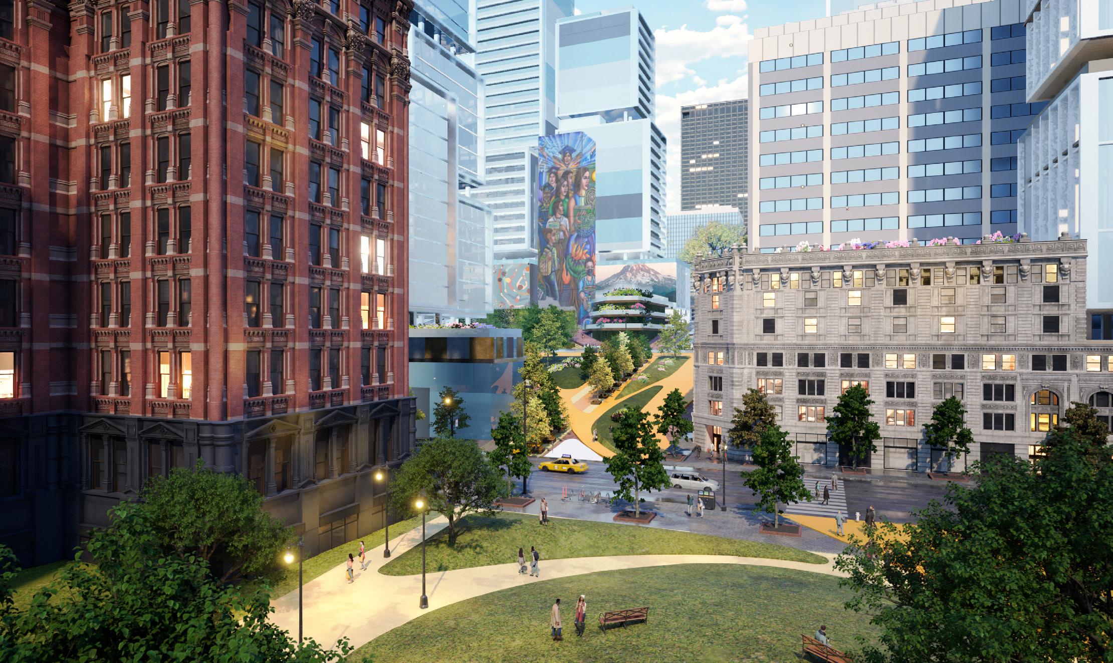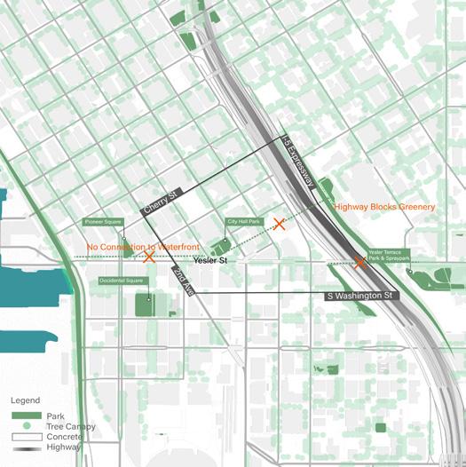1. Spatially, we connect the Pioneer Square to the other side of the viaduct through a smooth landscape axis.