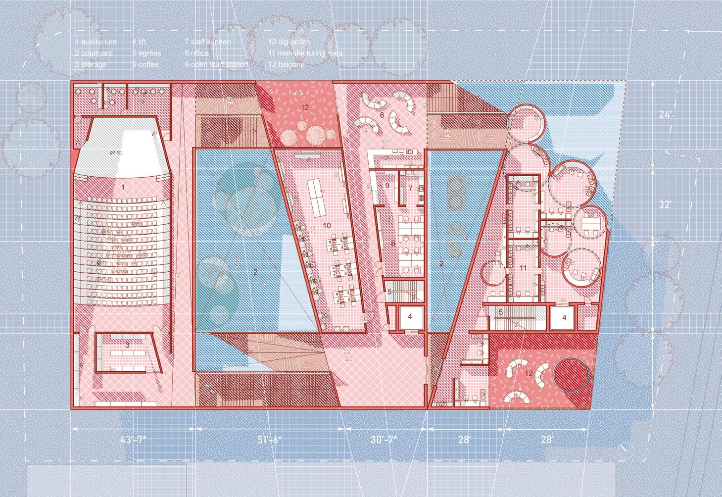 The new program for the site is to be imagined through a rigorous transformation of the existing buildings structures on the site. There is also a focus on heightened performance criteria, technical resolution, building assembly strategies, speculative material effects, and novel forms of representation.