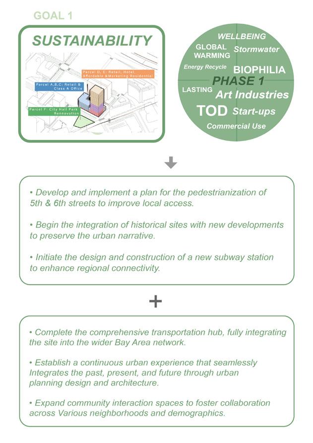 Trio Oases champions inclusivity by blending tranquil natural spaces, like the Oasis Path, with diverse cultural elements and universally accessible amenities. It transforms the Adult Detention building into a communal art pillar, reflecting diverse community voices. The design prioritizes social equity, offering economically accessible living, transitional housing, and essential services such as a homeless resource center and employment center. This holistic approach fosters a welcoming place for all, promoting interaction and understanding across different groups, and laying the groundwork for a cohesive, inclusive urban future.