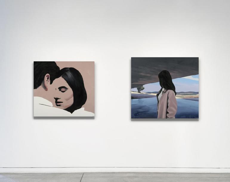 He reduces and intensifies the painted form on his canvas, purposefully minimizing facial features and avoiding the individual aspects of the character. In doing so, he emphasizes their intimate anonymity and semantic independence within this new landscape and embraces the projective nature of his paintings, and very skillful in choosing the moment or detail to paint.