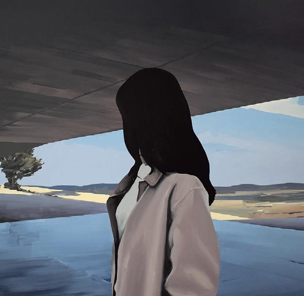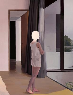 The characters depicted in his paintings take refuge in safe interiors or vast open spaces. To discovering themselves anew after their previous roles have been lost and their paths of return have been cut off. As his artistic practice develops within this new environment, Puczel accepts and learns to love bitter sweet polarity and makes it the core of his art in transition.