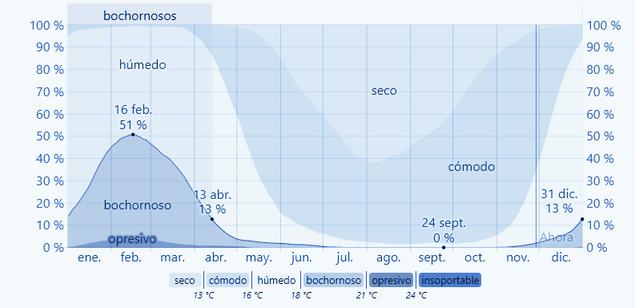 Basamos el nivel de comodidad de la humedad en el punto de rocío, ya que éste determina si el sudor se evaporará de la piel enfriando así el cuerpo. Cuando los puntos de rocío son más bajos se siente más seco y cuando son altos se siente más húmedo.