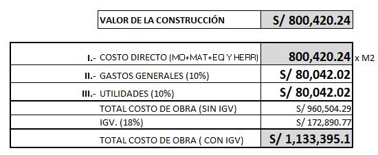 Tras conocer este dato, el área techada y los valores de ZUSN, podemos sacar el siguiente calculo