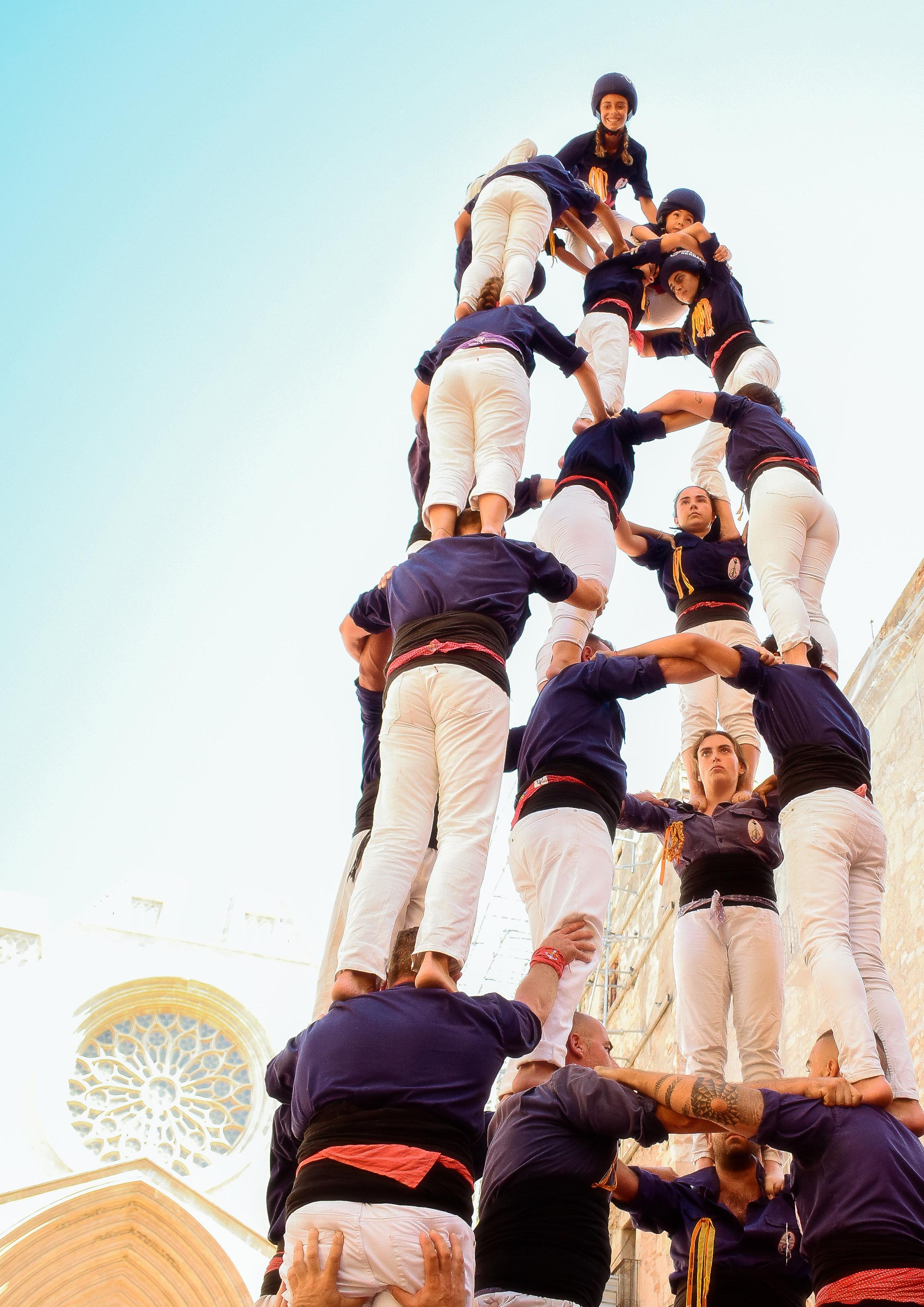 Són quarts d’onze del matí. Rebo un WhatsApp al mòbil: «Agnès, com que hi ha previsió de pluja, s’escurcen les rondes de castells, només en farà un cada colla i passarem directament als pilars. Pots venir abans?» Responc que «és clar que sí, cap problema». Tal com m’han indicat, em poso uns pantalons blancs –i unes vambes banques també–, per homogeneïtzar-me millor amb ells. La samarreta de la colla ja me la donaran. Me la posaré al bar que hi ha al davant de la plaça dels Cabrits, on hem quedat. Hi vaig amb una mica de vergonya. Quan no conec ningú, em torno tímida i vergonyosa, fins i tot puc arribar a semblar un pèl esquerpa. Les carcasses socials absurdes. Enfilo via Augusta amunt i passeig de Sant Antoni. Escurço camí si passo per la plaça del Rei. Faig el carrer Santa Anna, com m’agrada aquest carrer. Plaça del Fòrum i de cap al carrer Merceria. De cop i volta esclat de gent i de colors. Blau marí, lila, verd i ratlles blanques i vermelles que de lluny semblen de color vermell descolorit. A mi em toquen els blau marí, els Xiquets del Serrallo. Enguany volen que sigui la padrina del seu pilar caminant. Vaig dir que sí de seguida. No soc de cap colla en particular; sort d’això, si no, quin dilema, no? Soc de totes les colles, m’encanten els castells. De petita volia ser enxaneta, però a casa no em deixaven. El típic «es mira però no es toca»? Doncs això. No em vaig perdre mai cap diada castellera, érem uns bons parroquians del folklore local. Tenia amics que sí que s’hi enfilaven, i jo els envejava. Per això, suposo que no vaig dubtar en cap moment a dir que sí.