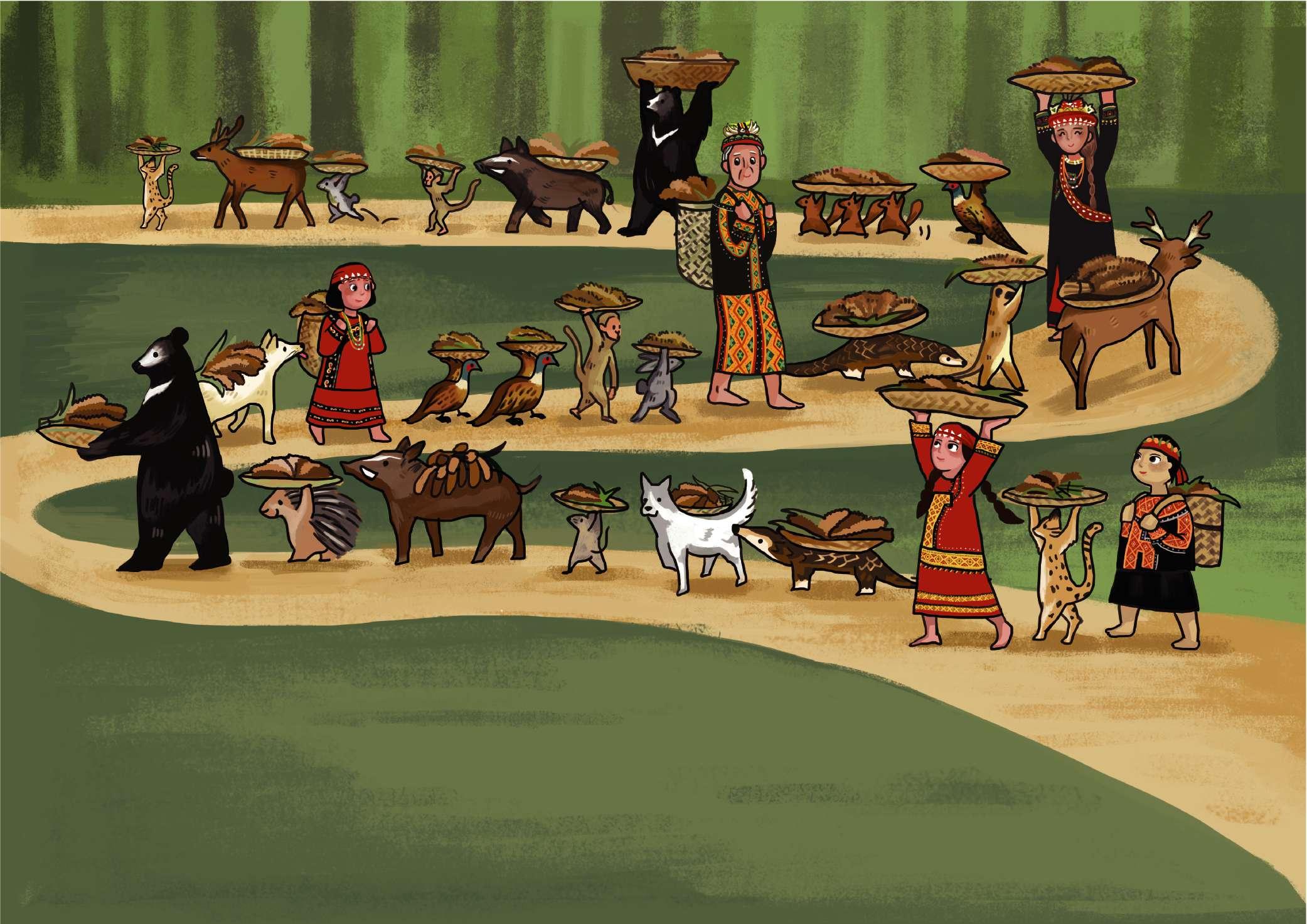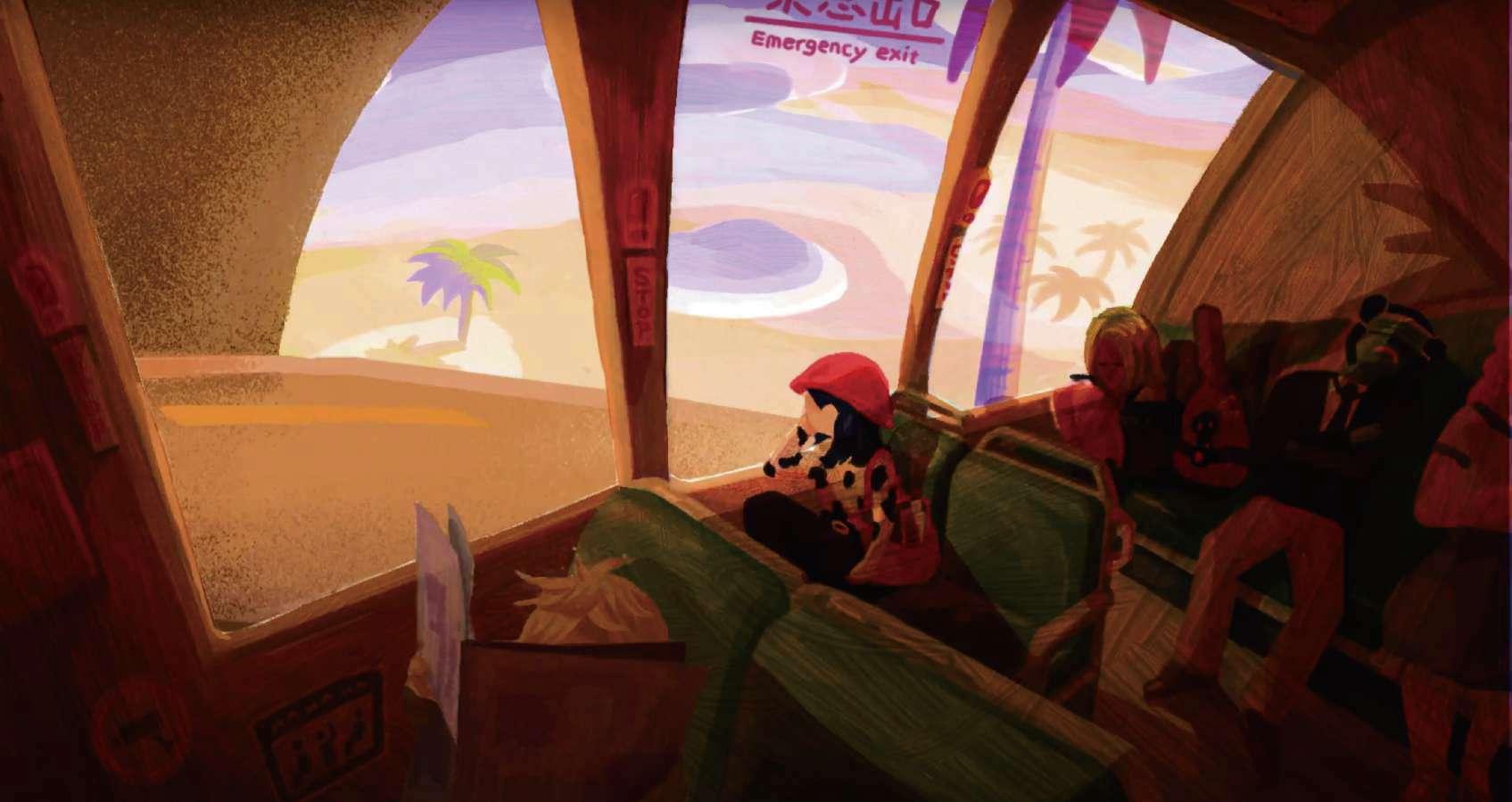 為符合插畫家許彤的漫畫及漸層風格,特地為背景繪製夕陽和落花的意象。