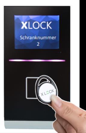 If the user has forgot which of the lockers he locked, the locker number can be checked at the info terminal. To do this, a Mifare Classic transponder (Mifare Classic 1K / Mifare Classic 4K) is held up to the RFID field of the info terminal (see picture).