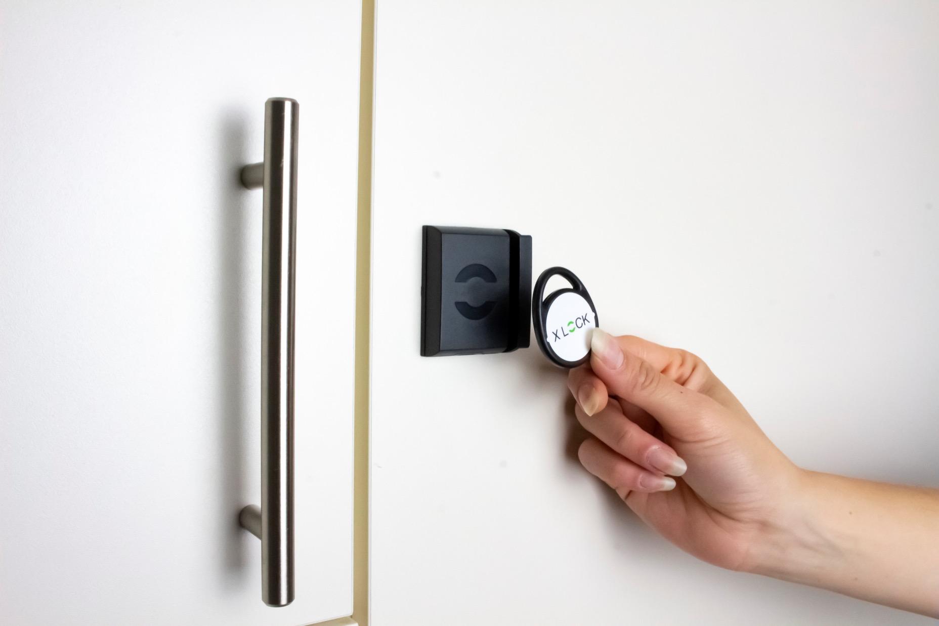 Only programmed ID Cards can lock and unlock the lock. After an authorized ID Card has been identified, the lock unlocks and automatically locks again after 4 seconds. The storage just needs to be closed and the lock is locked.