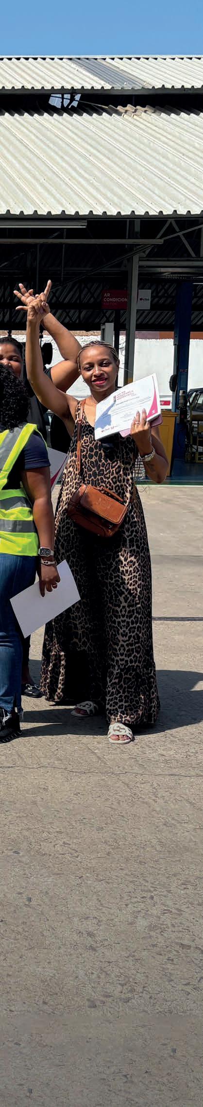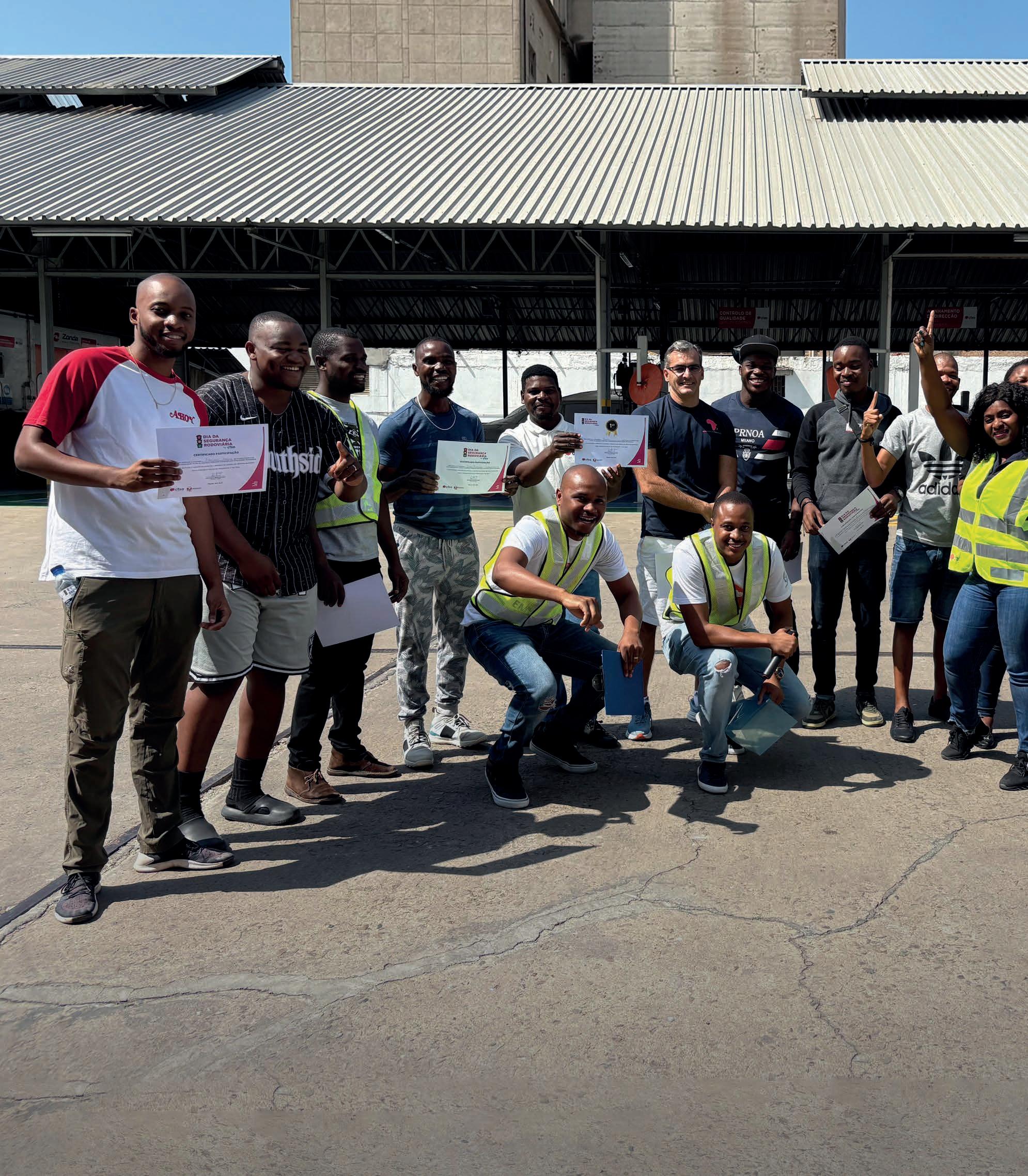 tos dos participantes sobre sinalização rodoviária, regras básicas de trânsito e troca de pneus. Foi especialmente inspirador ver a participação activa de vários colegas, em especial das mulheres, num espaço tradicionalmente dominado por homens — mostrando que a segurança é, e deve ser, uma responsabilidade de todos, sem distinção.