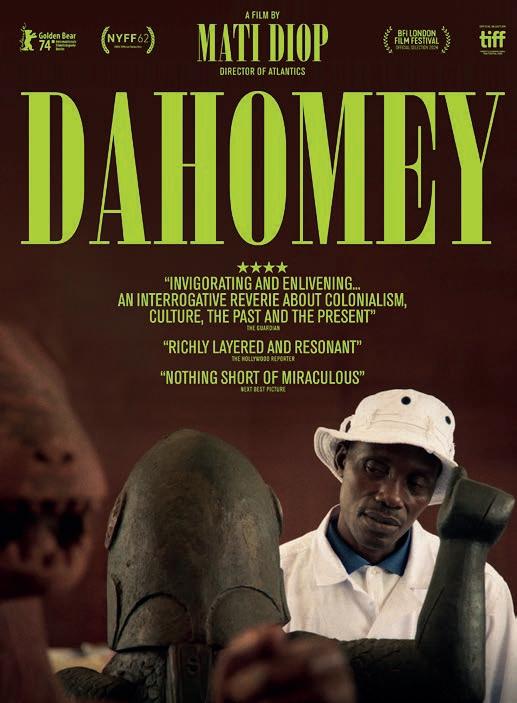 Premiado com o Urso de Ouro no Festival de Berlim, Dahomey acompanha o simbólico regresso ao Benim de 26 obras-primas saqueadas pela França em 1892, durante a invasão do antigo Reino do Daomé. Estas peças de arte africana, até então expostas no Museu do Quai Branly em Paris, foram finalmente repatriadas em 2021 – um acto que gerou debate, esperança e também desconforto. Diop constrói um documentário de grande densidade poética e política, dando voz a uma estátua do Rei Ghezo que narra o regresso das obras saqueadas ao Benim. Através da melancólica narração de Makenzy Orcel, a peça torna-se protagonista de uma travessia simbólica, que culmina num debate aceso entre estudantes universitários sobre o alcance e os limites da restituição patrimonial. Enriquecido por uma fotografia sensível e por uma banda sonora subtil, afirma-se como uma obra tecnicamente apurada e intelectualmente provocadora.