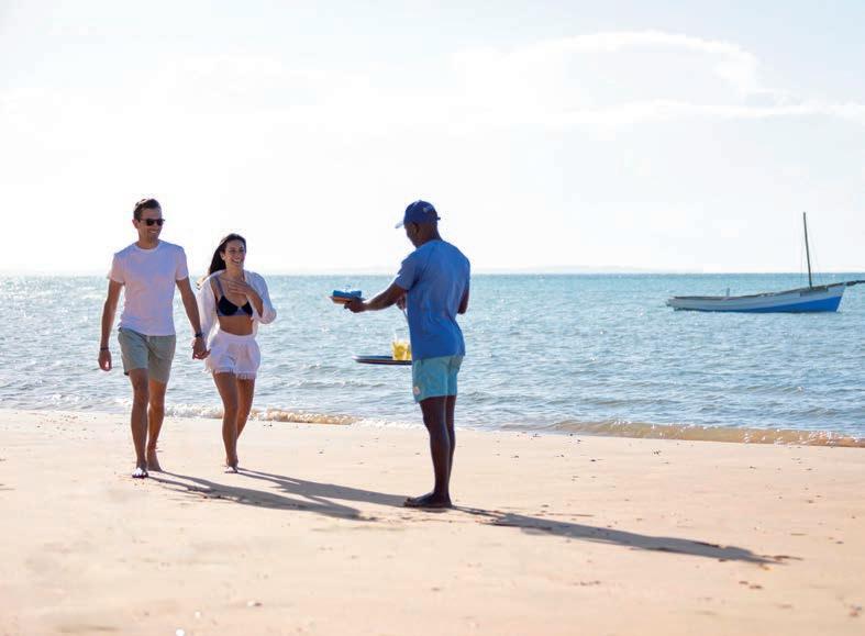 pitalidade acolhedora e personalizada. Aniversários, luas-de-mel e escapadelas românticas encontram aqui o cenário ideal. Famílias com crianças têm menus adaptados e actividades criativas. Cada suite dispõe de um tablet com aplicação interactiva que oferece informações sobre o arquipélago de Bazaruto, história local e serviços disponíveis — garantindo uma estadia fluida e personalizada.