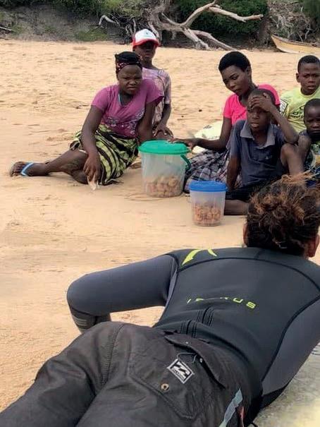 The Tofo Surf Club was found ed in 2018 and works with about 100 children within the commu nity. It also indirectly benefits the children’s families through social programmes of self-employment generation. “Tofo is a town centred on marine tourism. It’s important to educate the next generation about how the ocean provides food, jobs and tourism, so that young people also realise their self-worth and can embrace, in the future, all the employment op portunities that Tofo presents. The hope is that they will all become managers, business owners and each own their own future. I hope to be an inspiration to all the chil dren in Mozambique who want to